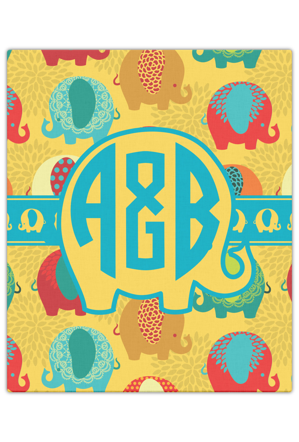 We have many different elephant design for you to chose from and if you are looking for something cute and adorable, then this is the design for you. This cute elephants design is absolutely the most adorable design. It has cute & pudgy elephants in different colors on a tone on tone background on mum flowers. The background color is re-color-able - and we chose to use the yellow African safari color.