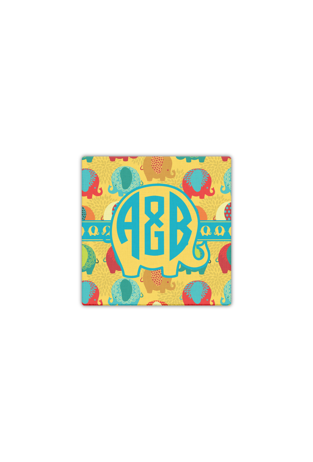 We created a ribbon & label just for this design with the adorable elephants and used them both and coordinated with teal. For the personalization, we chose the round monogram as we thought it looked adorable with the cute elephant label.