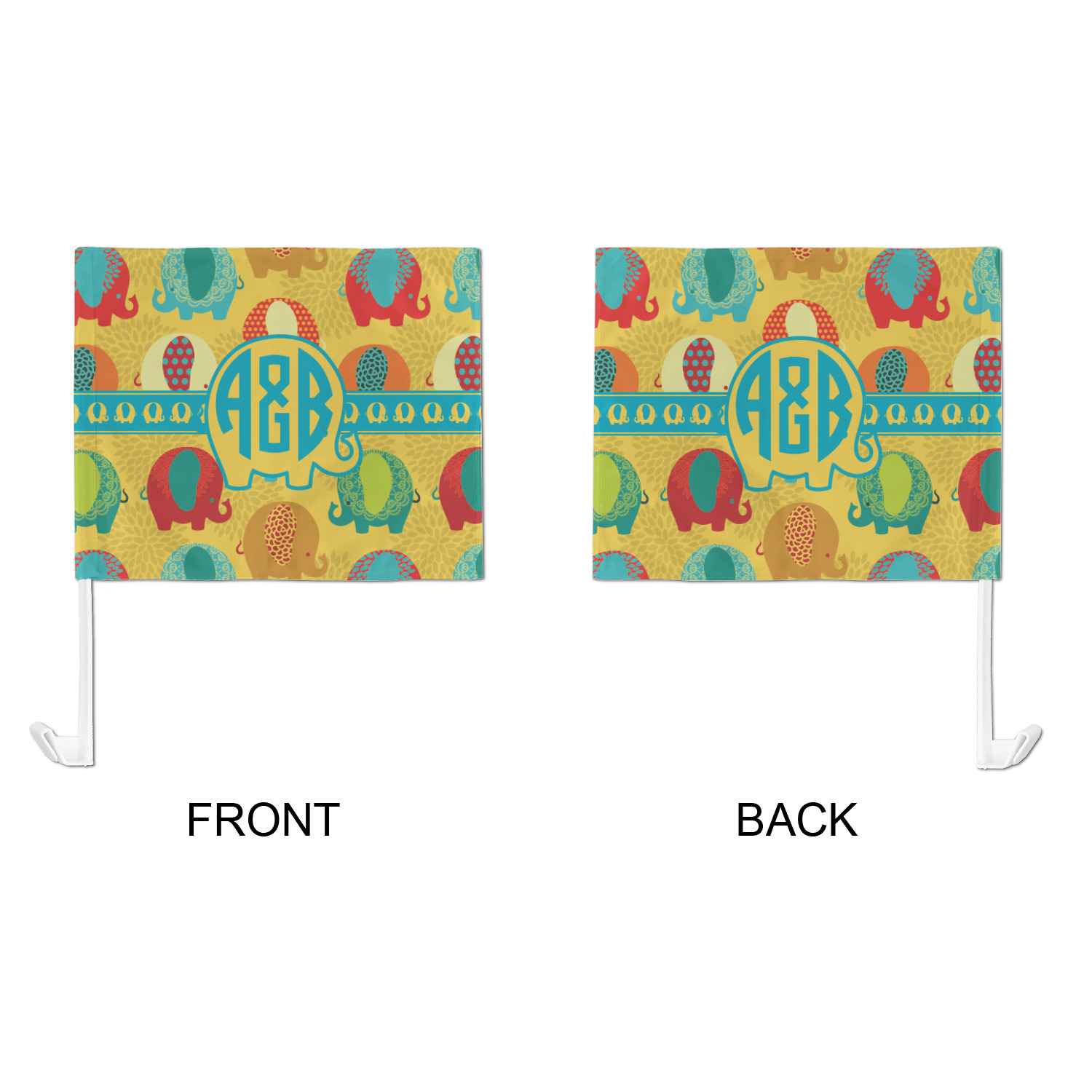 Our personalized flags are made from a durable, yet lightweight cloth that will proudly bear your logo or design of choice, while withstanding the outside elements. We have two size options - 8" x 11" and 11" x 15". Both come with a flag pole which includes a clip that secures the pole to the side window, whether it is rolled up or down. The flags are printed on both sides to display your design from all directions.