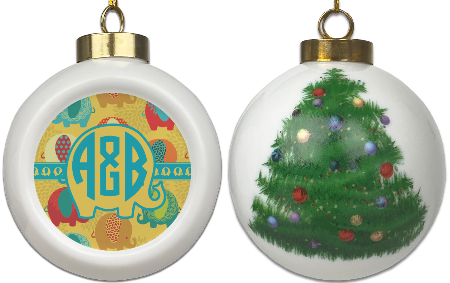 Our Christmas ornaments are a unique ceramic ball shape with a twist as it has a flat face to display your custom design! Select from one of our two design types - Christmas Tree or Poinsettia Garland - to adorn the curved back of your personal design. Each ornament measures 3H x 2.5W x 2D accompanied with a gold string accent for finishing touches to hang on your beautiful Christmas tree!