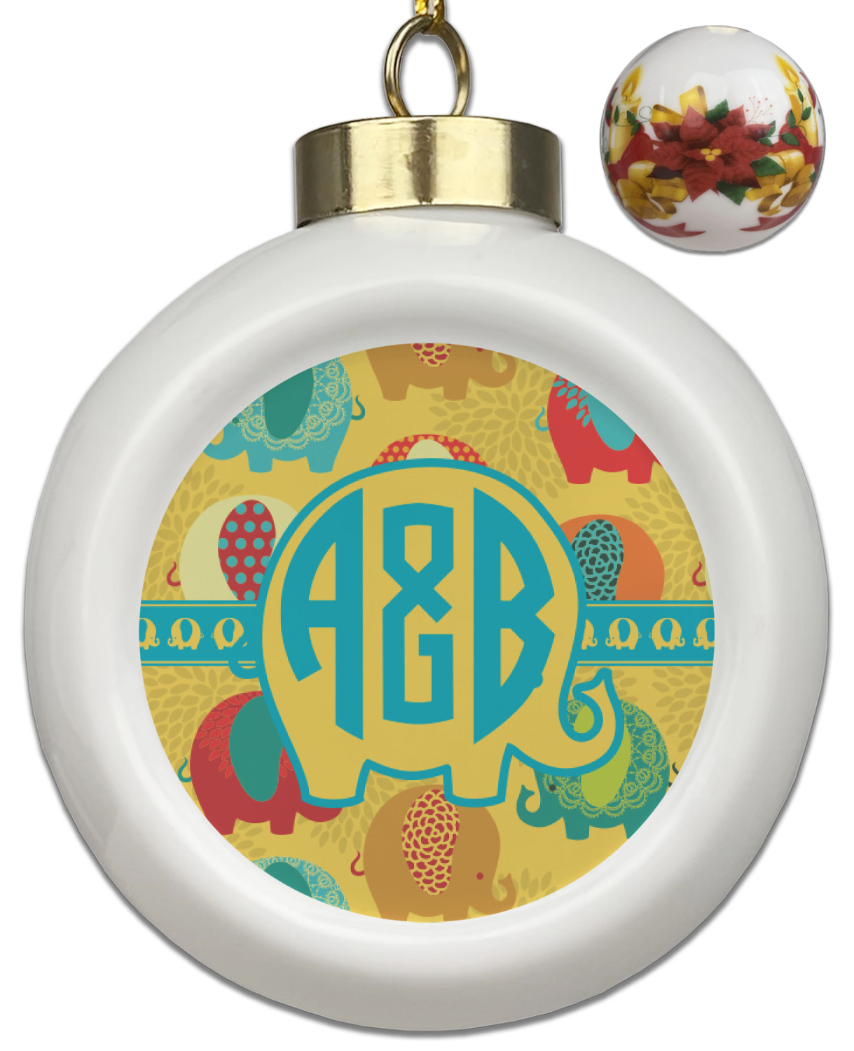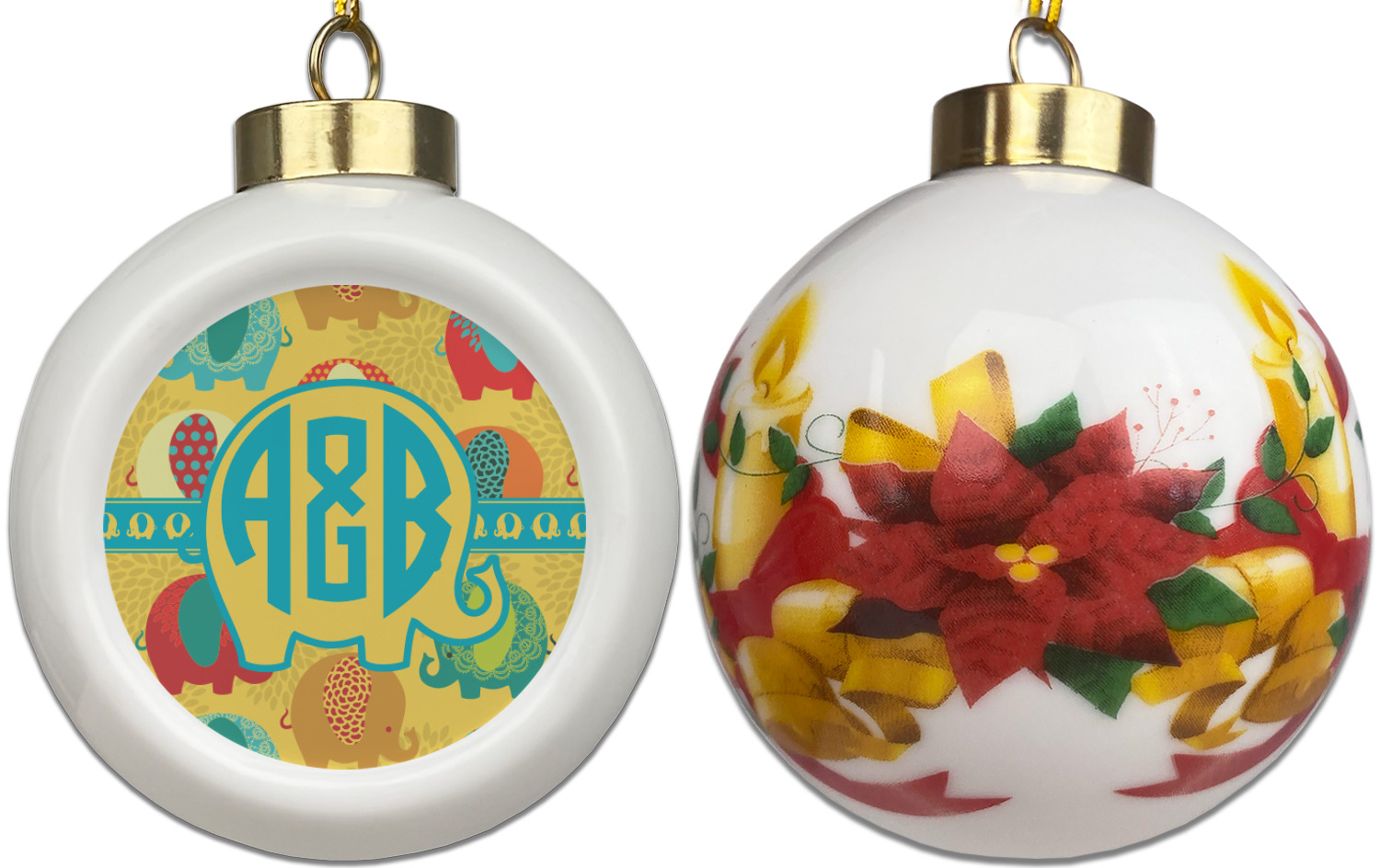Our Christmas ornaments are a unique ceramic ball shape with a twist as it has a flat face to display your custom design! Select from one of our two design types - Christmas Tree or Poinsettia Garland - to adorn the curved back of your personal design. Each ornament measures 3H x 2.5W x 2D accompanied with a gold string accent for finishing touches to hang on your beautiful Christmas tree!