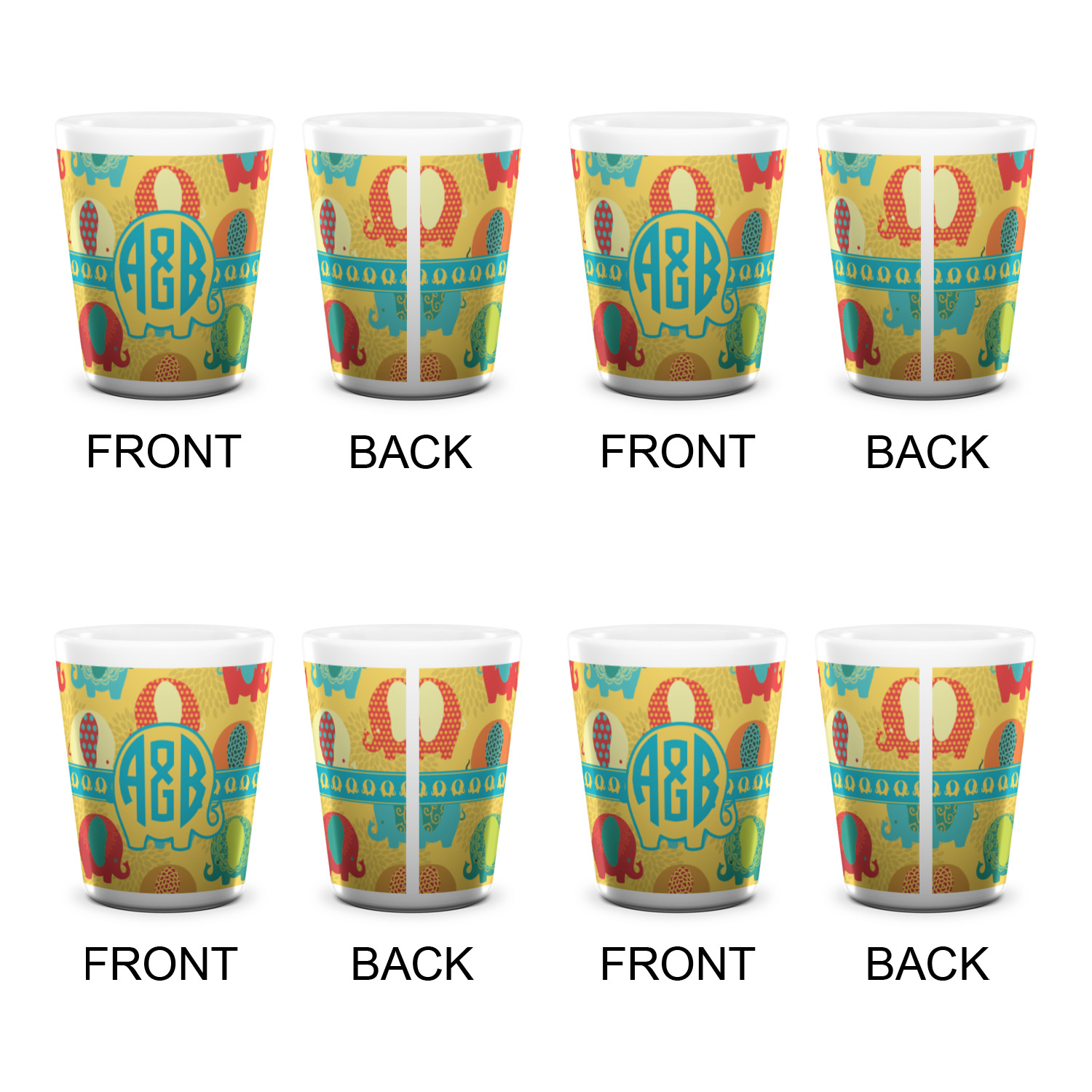 Made from ceramic these shot glasses are printed in full color with the design of your choice. These are a standard 1.5oz size and stand 2.25" tall. Available in a full white ceramic or a two-tone with a black color inside the shot glass. Buy a single or a set of 4, all of which can be designed separately to get you just what you want and need.