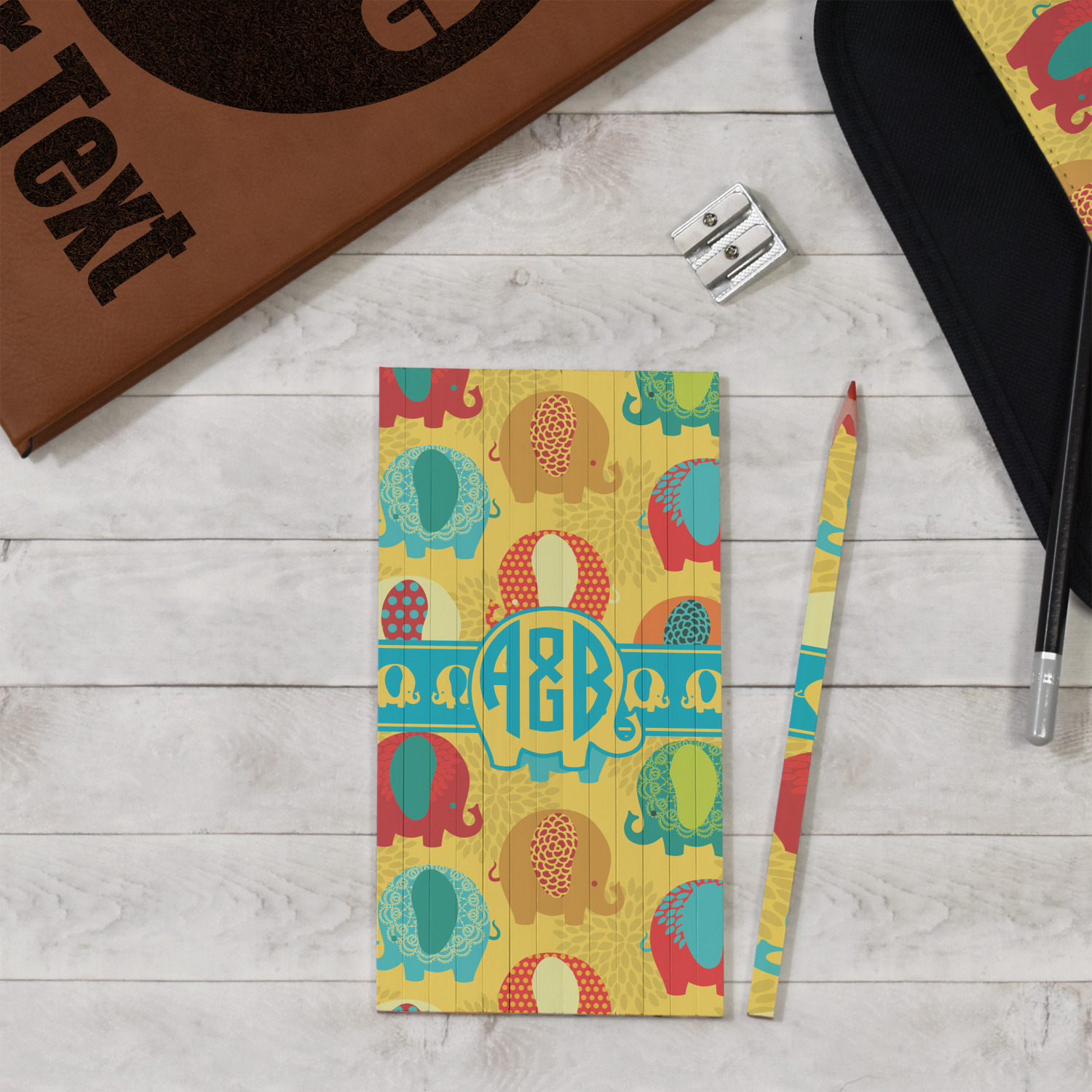 We created a ribbon & label just for this design with the adorable elephants and used them both and coordinated with teal. For the personalization, we chose the round monogram as we thought it looked adorable with the cute elephant label.