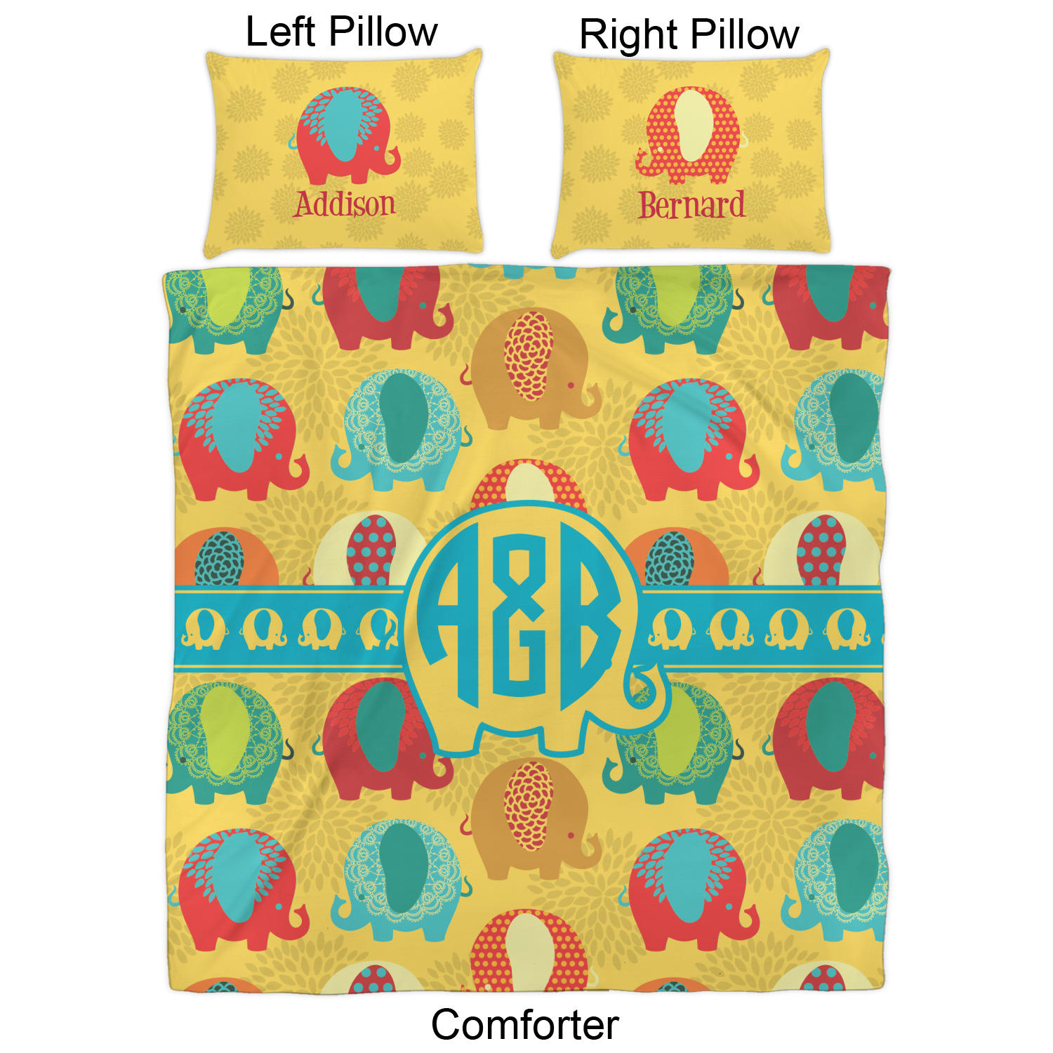 We have hundreds of different design templates for you to choose from Each design can be customized to your exact specifications. Not only can you customize the comforter, but you can also customize each pillow sham e.g. for a queen comforter set you have have Mr & Mrs pillow shams with the last name on comforter.