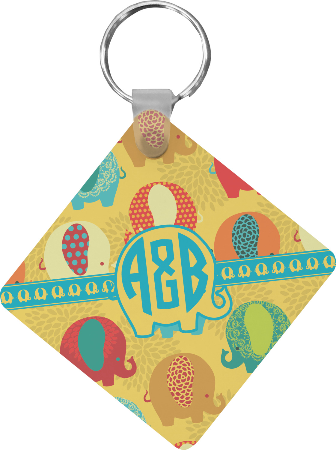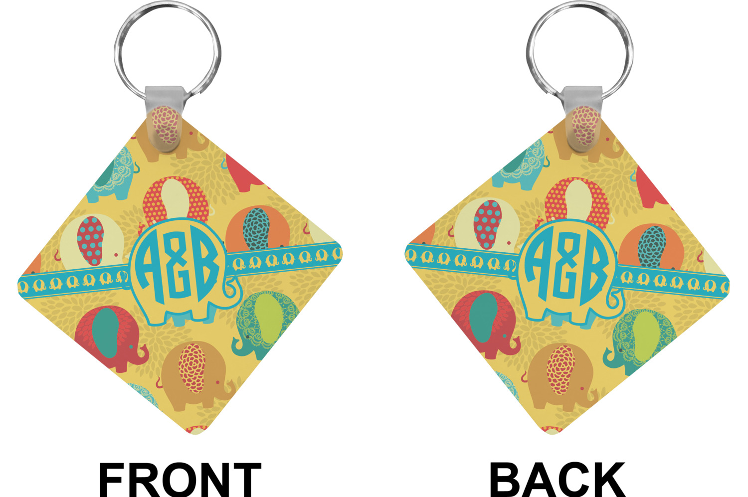 Our personalized keychains attach to the included metal, split key ring with a plastic, removable snap. Since a metal ring is included with your purchase, you have the liberty to keep your keys together on the ring, with or without your unique keychain. We offer this keychain in three different shapes: circle, heart, or diamond. We print your personalized design(s) on both sides of the key chain, and the surface has a glossy, reflective finish that only emphasizes your design. Each keychain is approximately 2.25 by 2.25 inches.