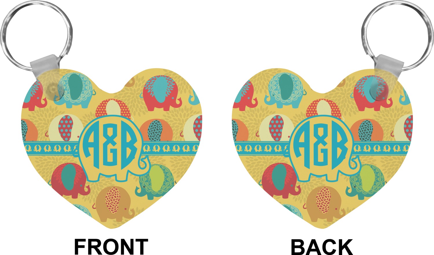Our personalized keychains attach to the included metal, split key ring with a plastic, removable snap. Since a metal ring is included with your purchase, you have the liberty to keep your keys together on the ring, with or without your unique keychain. We offer this keychain in three different shapes: circle, heart, or diamond. We print your personalized design(s) on both sides of the key chain, and the surface has a glossy, reflective finish that only emphasizes your design. Each keychain is approximately 2.25 by 2.25 inches.