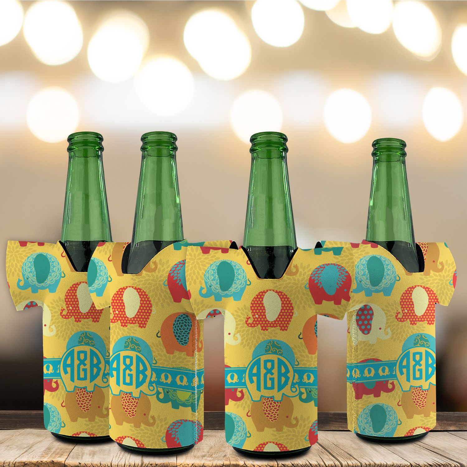 We created a ribbon & label just for this design with the adorable elephants and used them both and coordinated with teal. For the personalization, we chose the round monogram as we thought it looked adorable with the cute elephant label.