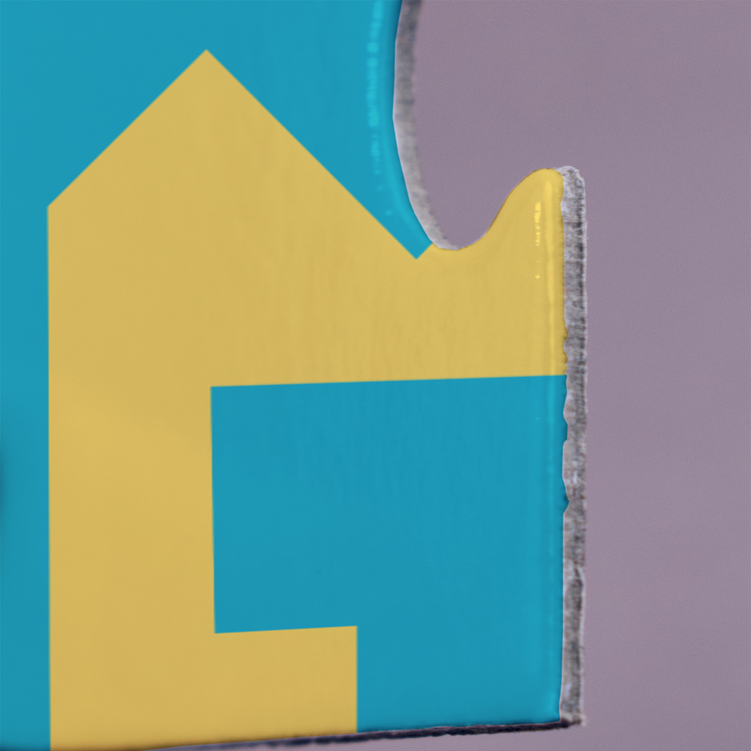We print our puzzles on thick white chipboard in vibrant colors, then laminate the chipboard and die cut your puzzle. Your jigsaw puzzle is shipped to you in a box with the image of the puzzle on the box.
