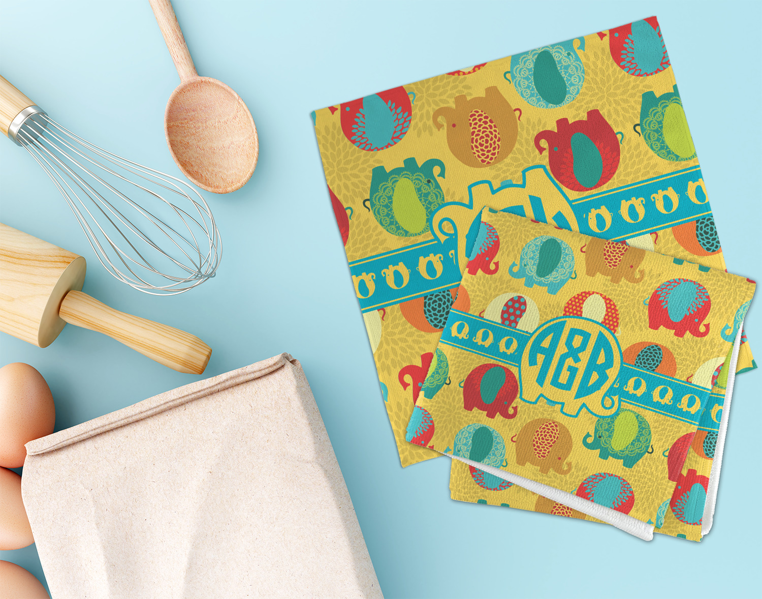 We have many different elephant design for you to chose from and if you are looking for something cute and adorable, then this is the design for you. This cute elephants design is absolutely the most adorable design. It has cute & pudgy elephants in different colors on a tone on tone background on mum flowers. The background color is re-color-able - and we chose to use the yellow African safari color.