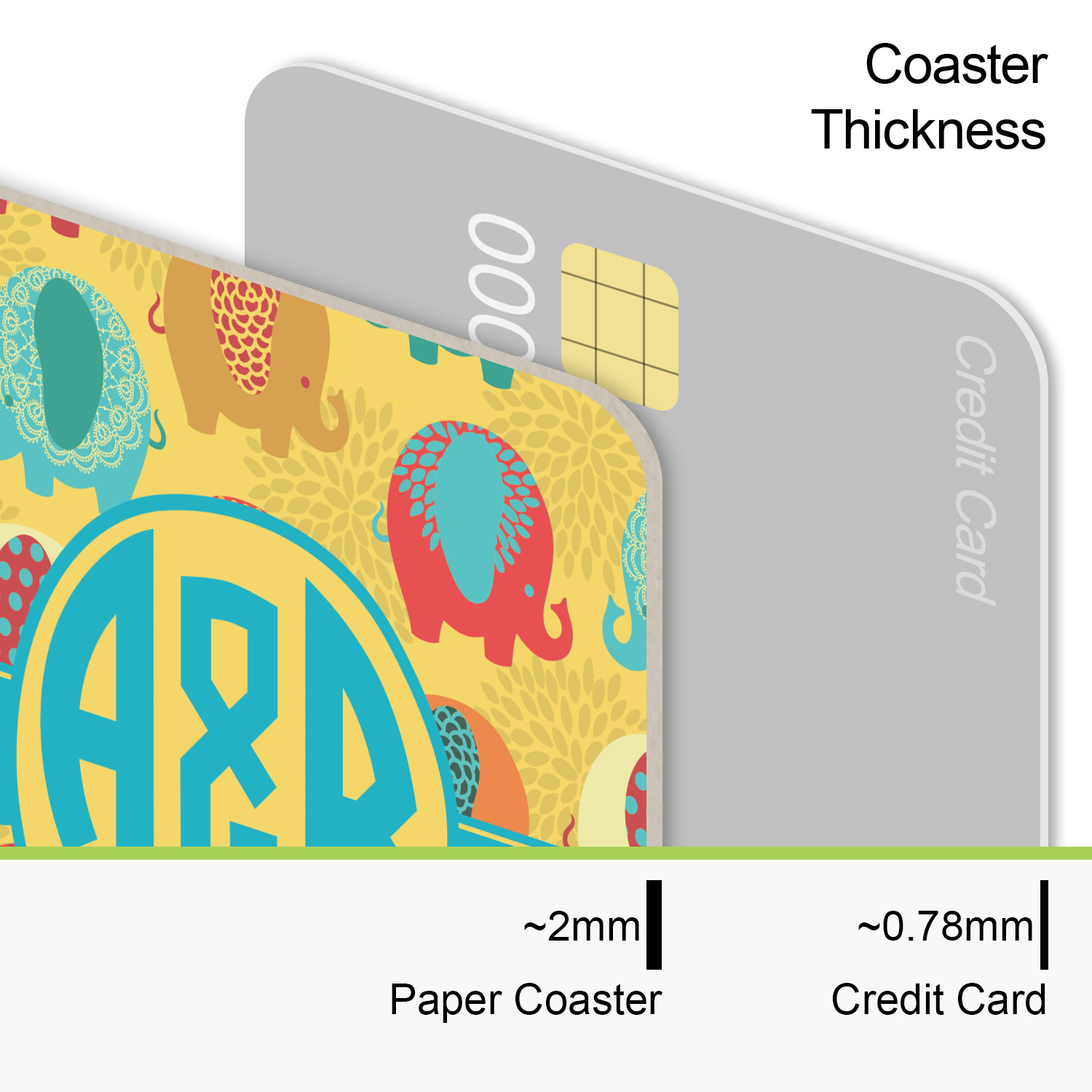 These coasters are perfectly sized for just about any drink being a 4"in square. The paper construction is a thick heavyweight 80 point pulpboard perfect for absorbing the condensation on the outside of your glass.