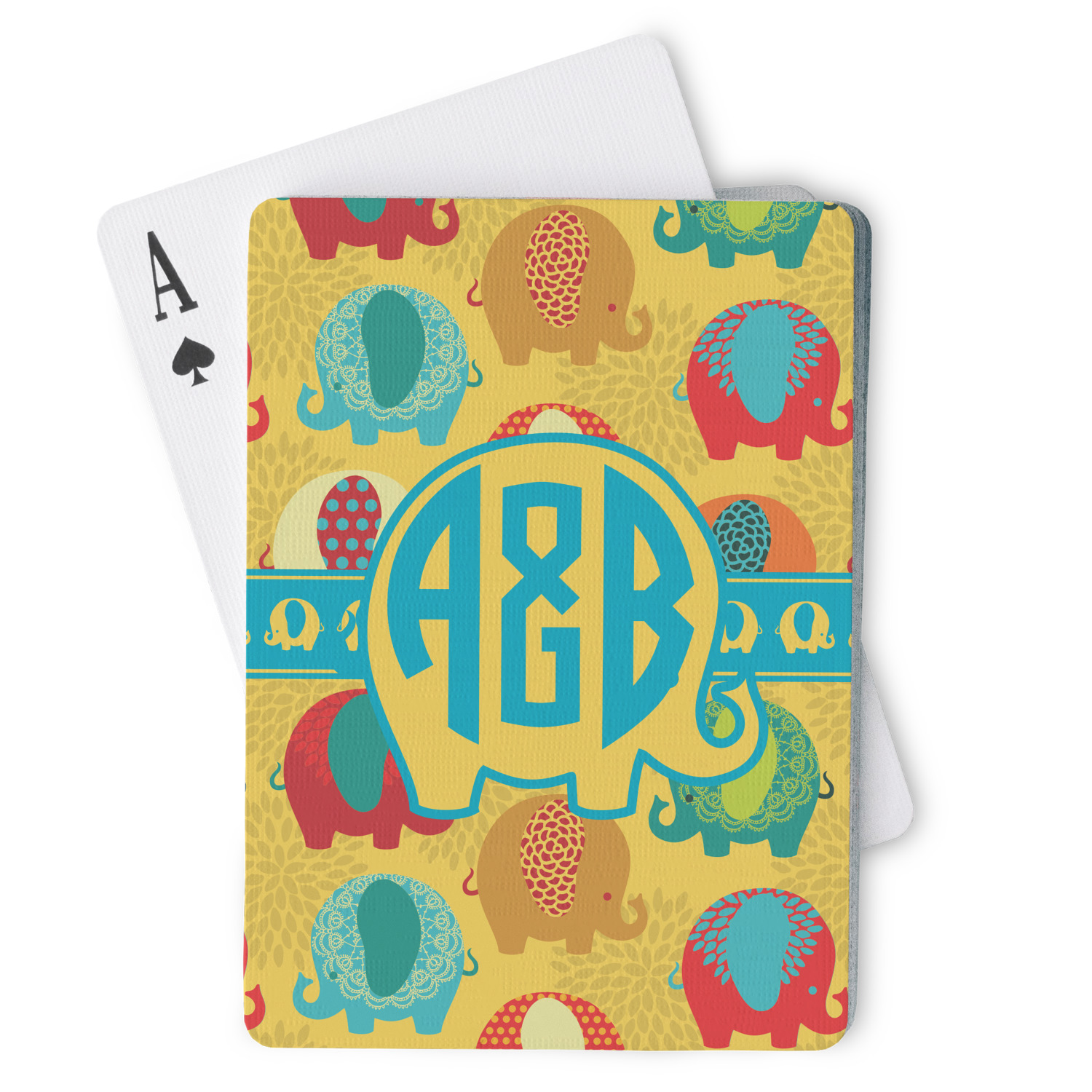 Here at YouCustomizeIt, you can customize your playing cards by uploading your own design, photo, or logo. We have design templates that you can customize by changing the patterns, colors, graphics, personalization styles, etc. - using our free for you to use in our design elements library.