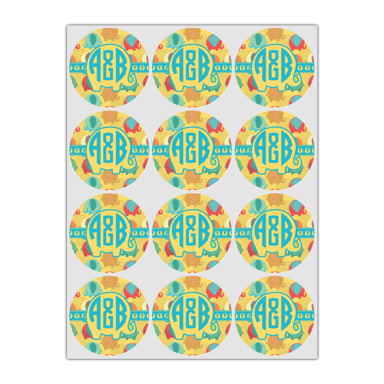 We created a ribbon & label just for this design with the adorable elephants and used them both and coordinated with teal. For the personalization, we chose the round monogram as we thought it looked adorable with the cute elephant label.