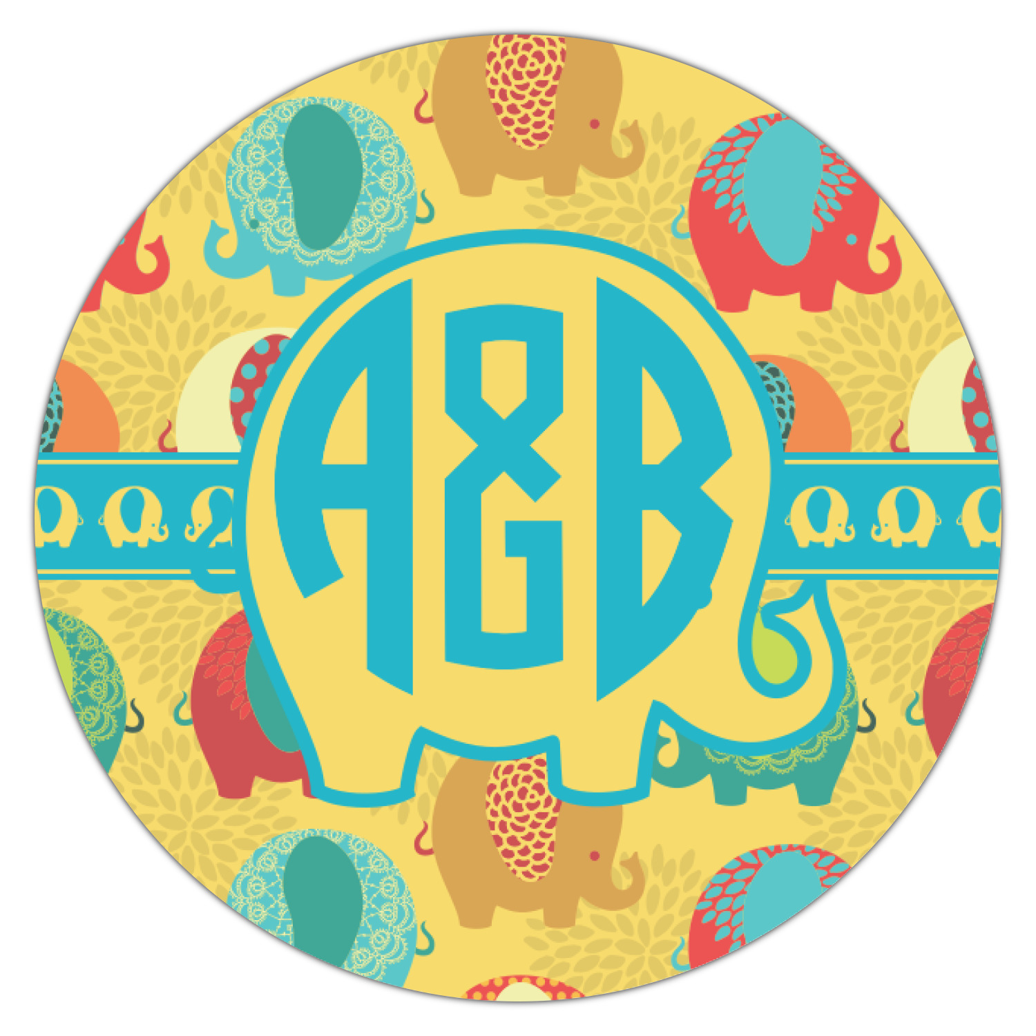 We have many different elephant design for you to chose from and if you are looking for something cute and adorable, then this is the design for you. This cute elephants design is absolutely the most adorable design. It has cute & pudgy elephants in different colors on a tone on tone background on mum flowers. The background color is re-color-able - and we chose to use the yellow African safari color.