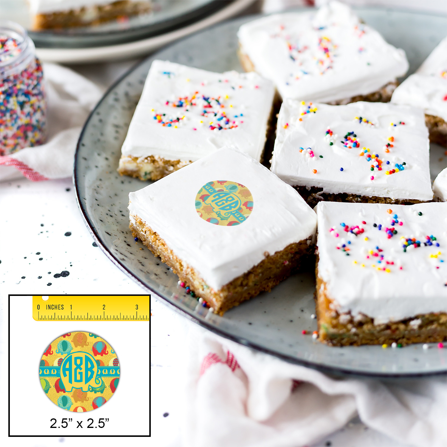 We created a ribbon & label just for this design with the adorable elephants and used them both and coordinated with teal. For the personalization, we chose the round monogram as we thought it looked adorable with the cute elephant label.