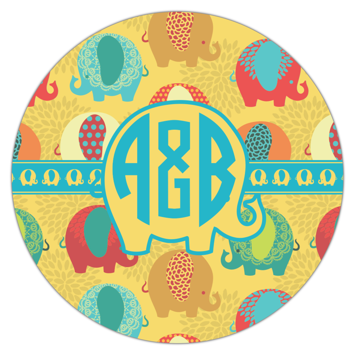 We created a ribbon & label just for this design with the adorable elephants and used them both and coordinated with teal. For the personalization, we chose the round monogram as we thought it looked adorable with the cute elephant label.