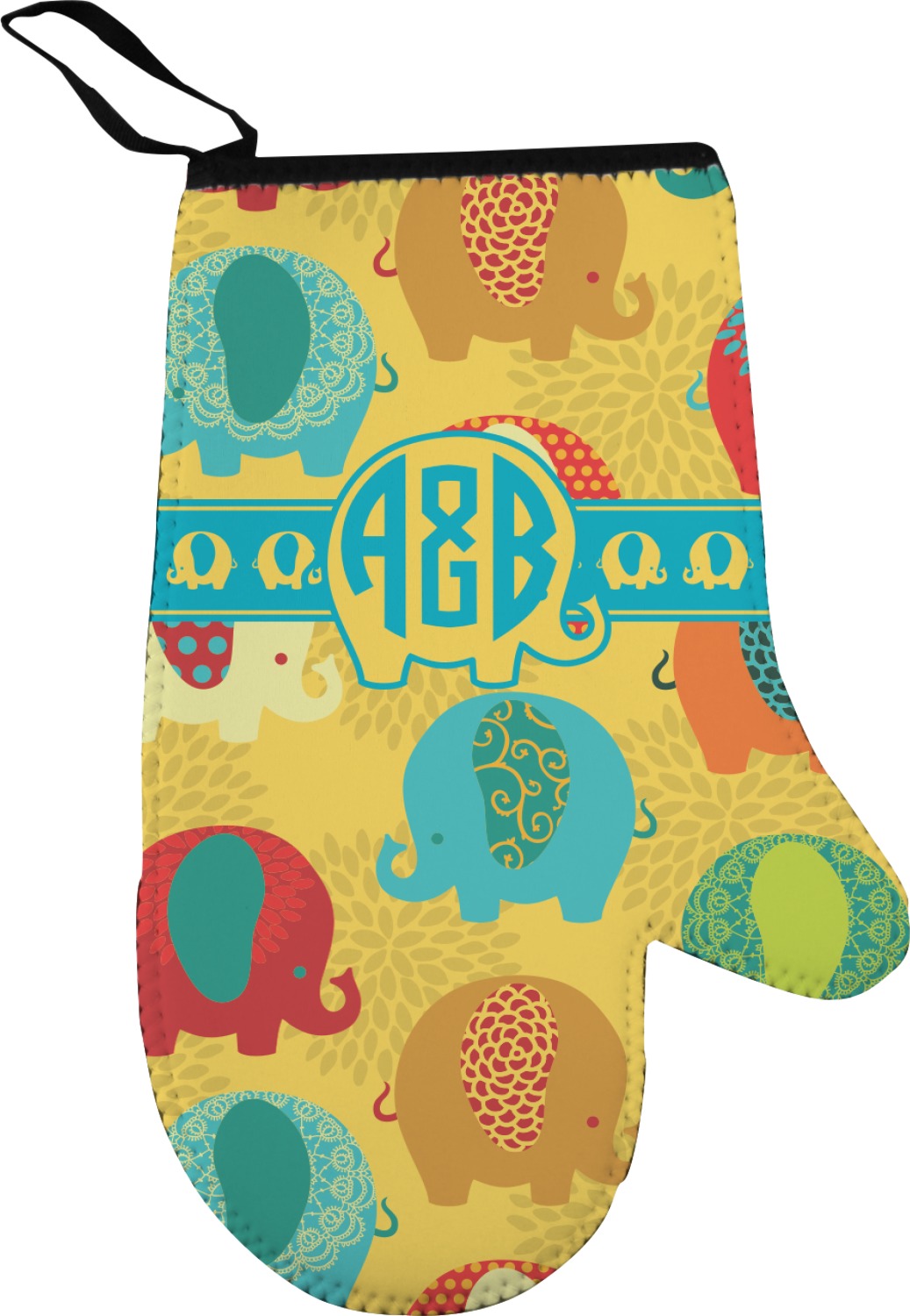 Our oven mitt gloves are made from a durable neoprene and feature a textured, rubberized surface on the palm's side for an easy grip. A strong stitch connects the neoprene and rubber, increasing the durability of this mitt. These oven gloves are spacious, and can accommodate both small and large hands. A thin, black loop is attached to the mitt's top, which can be used to hang and store the mitt. Your customization is displayed across the entire front of the neoprene surface. We sell both left and right hand models of these, separately.