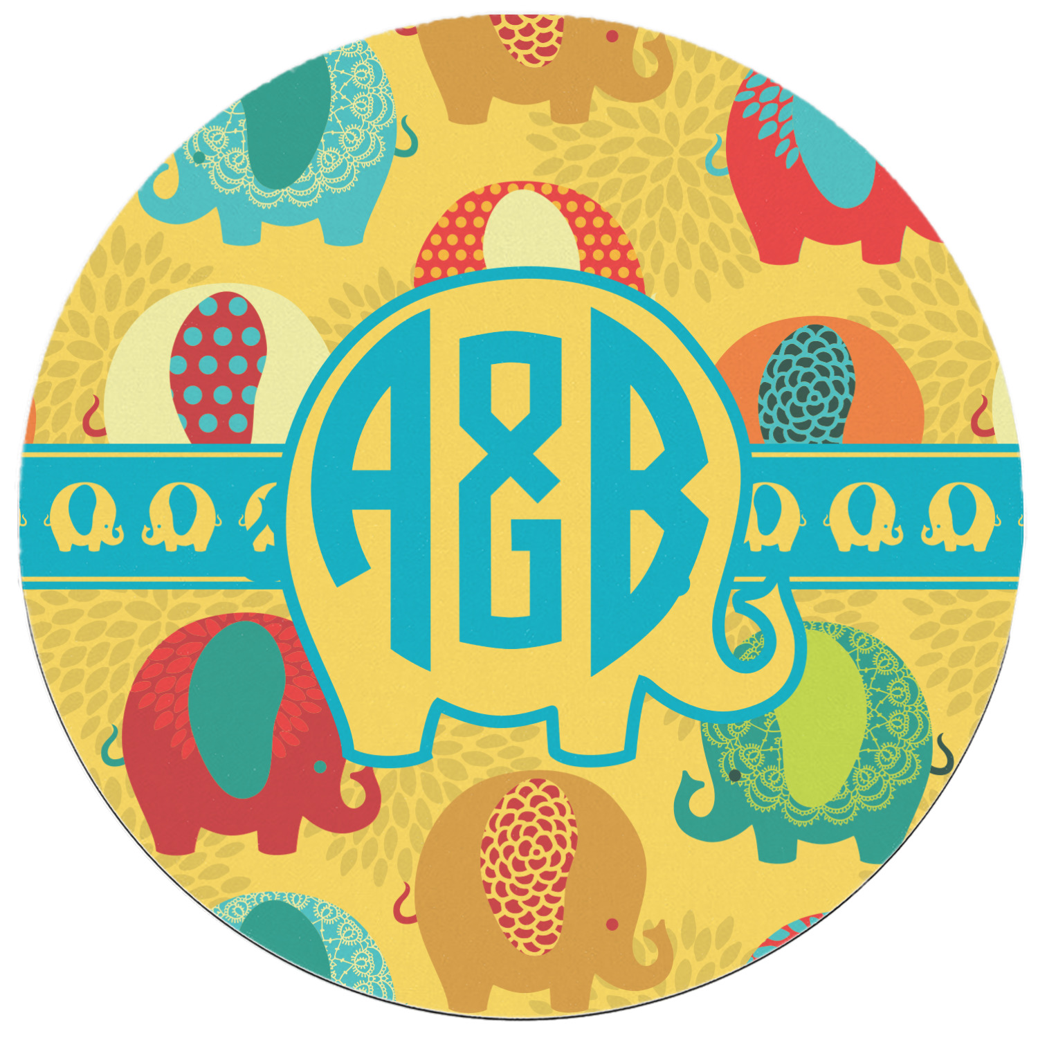 We have many different elephant design for you to chose from and if you are looking for something cute and adorable, then this is the design for you. This cute elephants design is absolutely the most adorable design. It has cute & pudgy elephants in different colors on a tone on tone background on mum flowers. The background color is re-color-able - and we chose to use the yellow African safari color.