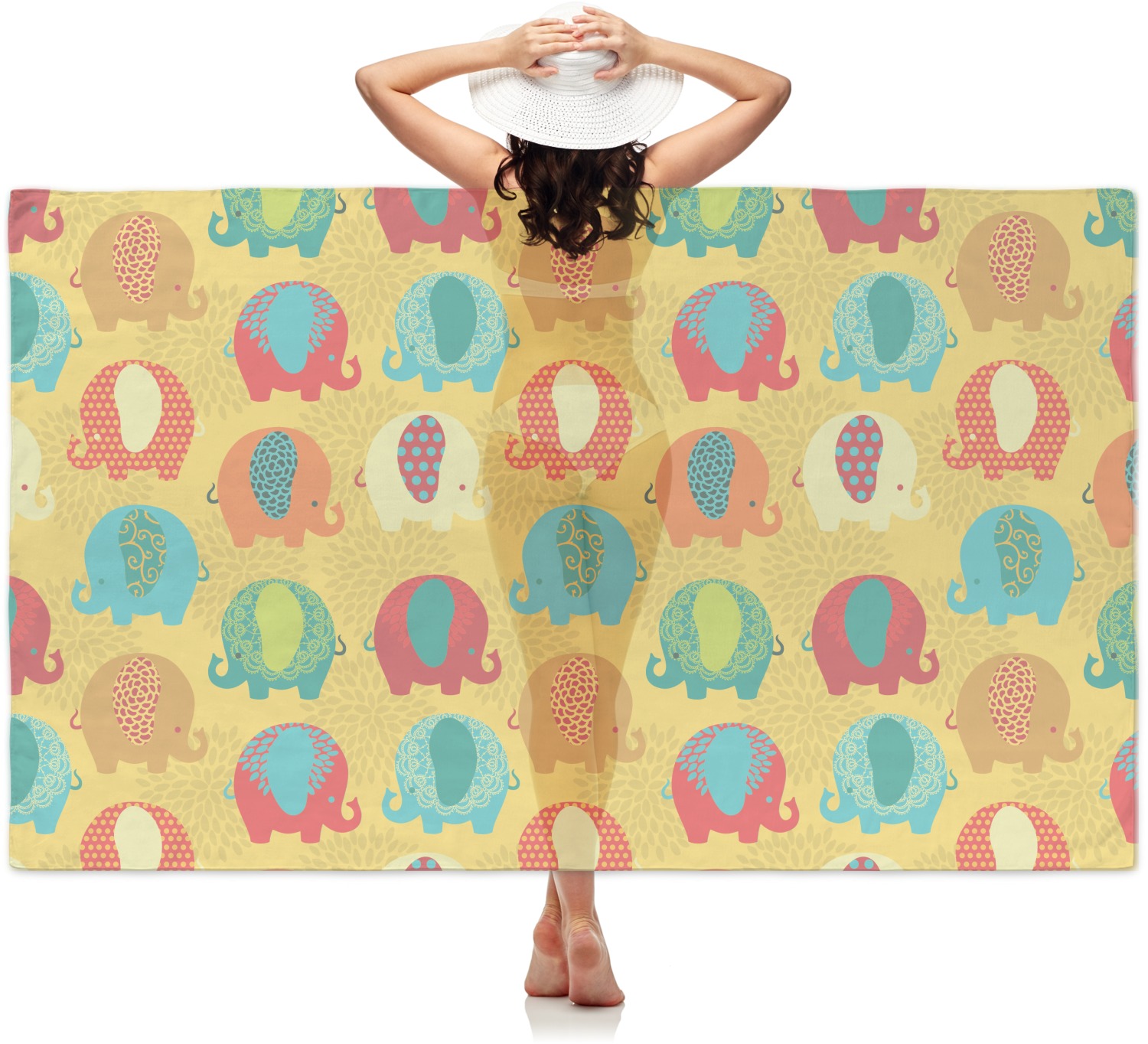 This sarong is 42" x 70" of personalized beauty. It is made of a soft polyester for comfort when against your skin. The material is sheer, so it serves well as a swimsuit cover-up or a shawl. There are so many uses for this wonderful product that you will be sure to find when it is in your hands.