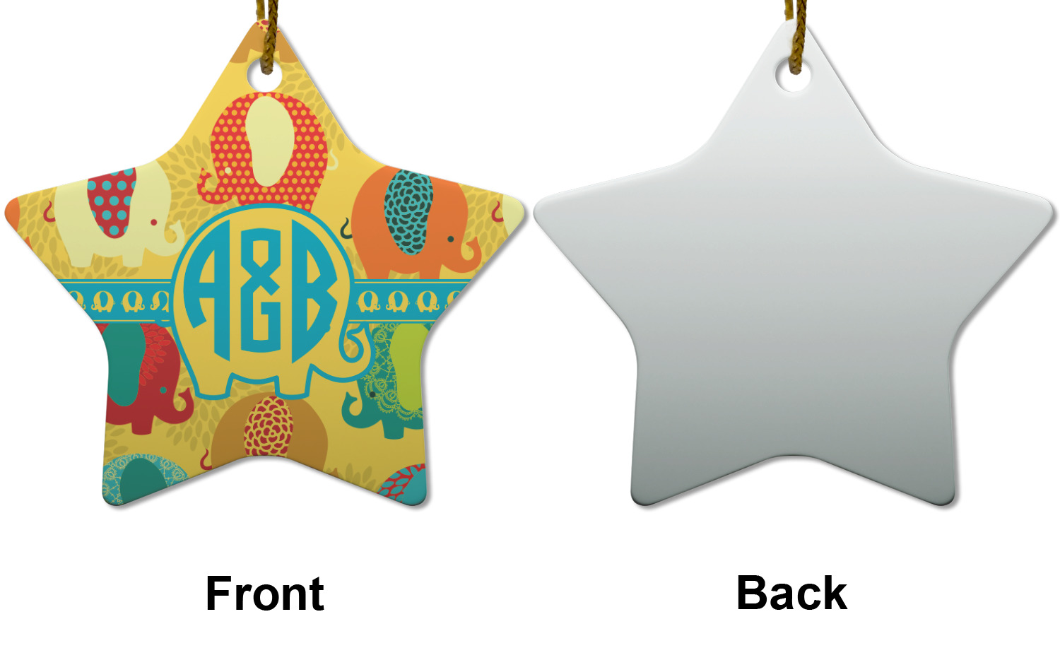 Have a happy holiday and share the joy of Christmas with your loved ones by hanging up personalized ceramic ornaments! Ornaments add a touch of who you are and the things you love onto the Christmas tree! Create custom ornaments for the kids and have them hang up their own star with their name, or pay remembrance this holiday to missed loved ones with our ceramic heart ornament. Browse many of our unique designs and customize them the way you'd like! From monograms, logos, and patterns, we have it all! You can even upload a photo of your family for us to print onto the ornament! The possibilities are endless!