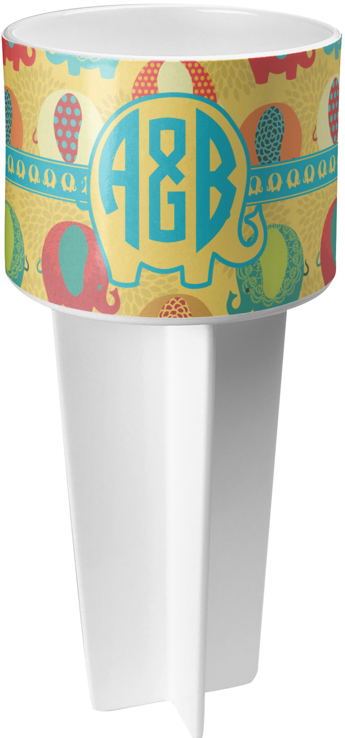 This cup holder has a large stake at its bottom that anchors it to the sand or ground below, while the cup holder rests above the stake. The entire drink holder is made of durable plastic and displays your customization around the cup holder portion. We sell these personalized beach spikers in two different colors: black and white.