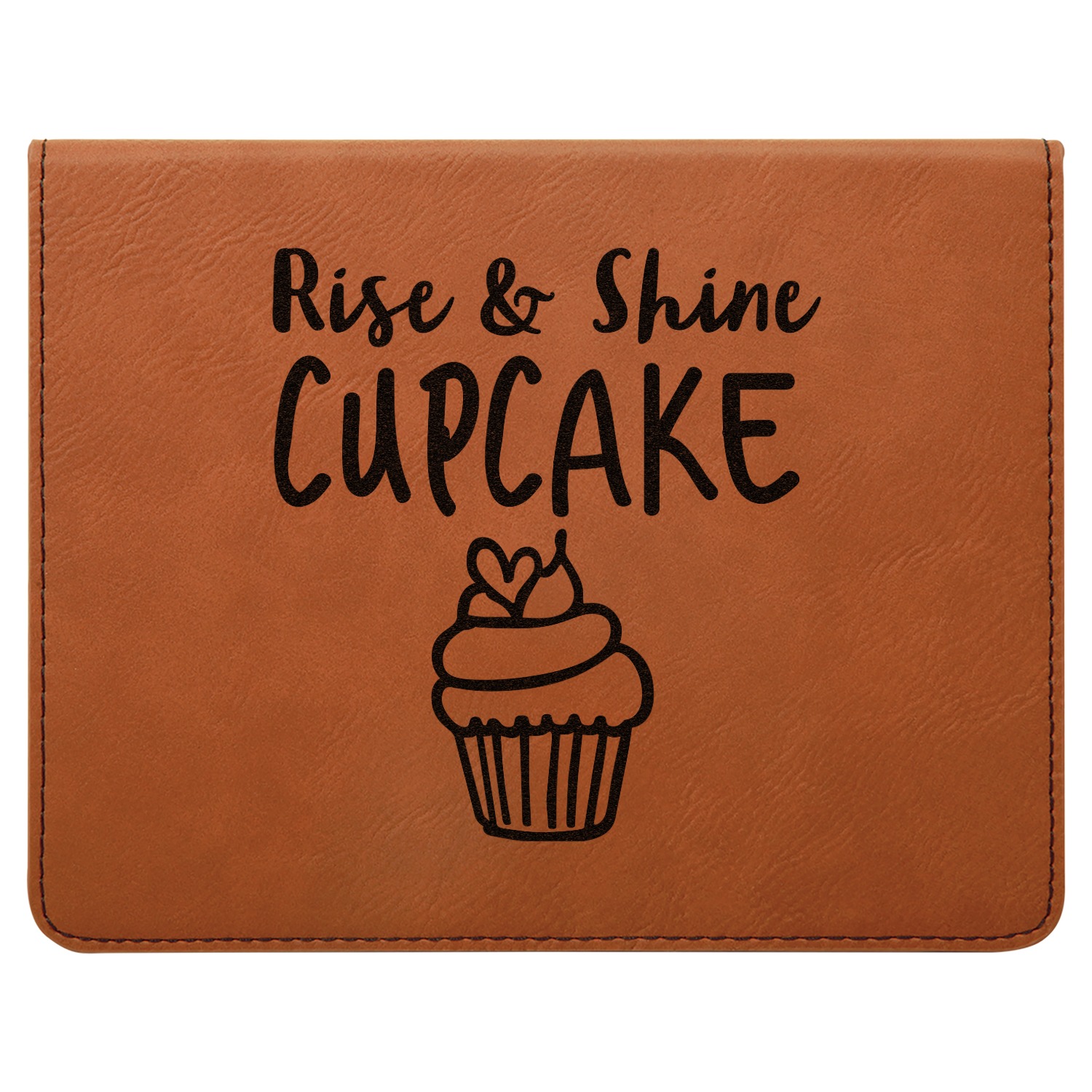 This set includes a wine stopper, pourer, drip ring, and a corkscrew! The exterior of the box is a gorgeous, cognac-brown leatherette, while the interior is covered in a black, velvety material. Four foam indentations, unique to the shape of the wine tool, are found at the bottom half of the box's interior. The tools fit snugly into each of their designated spots, and the foam material helps to protect the integrity of your tools. Each of the wine gadgets features a bamboo accent, with the location and style depending on the tool itself. We laser engrave your personalized design onto the lid of the box, which easily flips open and is secured closed by a small magnet. The wine accessories box measures at 7 by 5.5 inches in total.