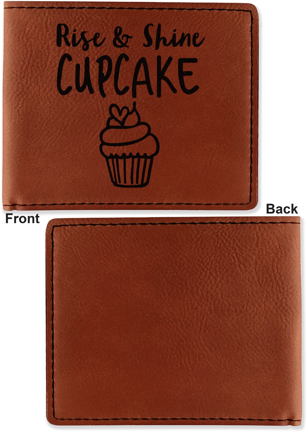Your bifold wallet will be personalized by laser engraving, which will be a black color on the wallet. Choose a graphic, text, or monogram to personalize your wallet. There are thousands of choices in our design center.