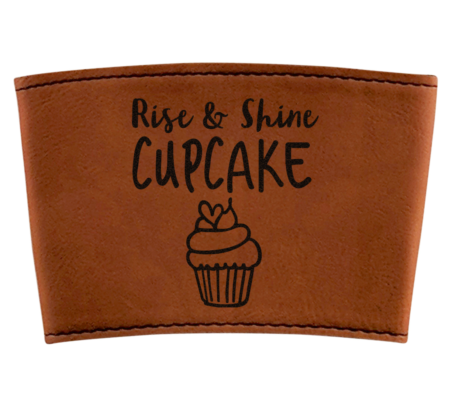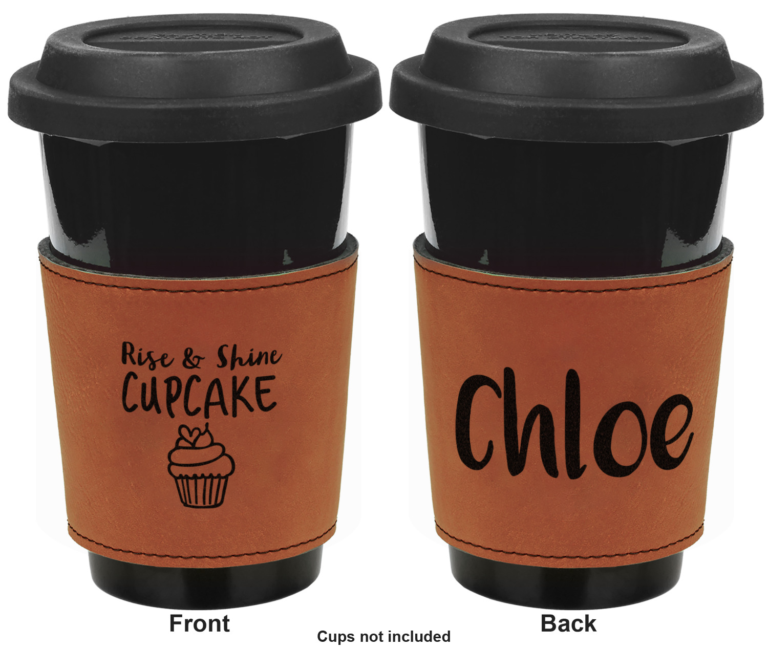 This cup sleeve is made from a suave, cognac-brown leatherette and finished with an intricate, black stitch. The interior of this can sleeve is fabricated from a thin foam material to help insulate your mug's contents. The sleeve is specifically made to suit tapered glasses or mugs, so the top's diameter is 3.5 inches, while the bottom's diameter is 2.75 inches. Your customized design will be laser engraved into the leatherette, leaving behind crisp, black imprint. With these products, we provide you with the option of engraving the front and back, or the front only.
