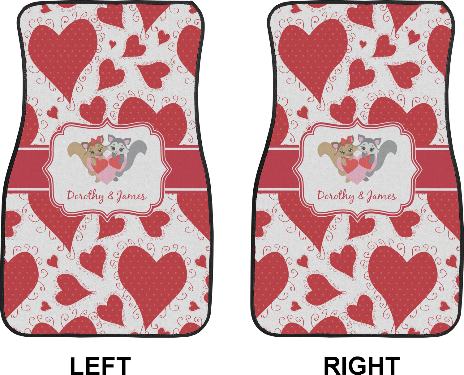 We craft our auto floor mats mats from polyester, apply a black finish to the edges, and lined at the bottom to prevent slippage. These mats protect your floors from grass, mud, and any accidental spills. We display your personalized design on the front face of each mat. The sizes of these car floor liners are standardized to provide a versatile fit for all vehicles. The front rows car mats measure at 17 by 26.5 inches, while the back rows measure at 17 by 13 inches. We sell three packages of car floor mats. You can purchase a pair of front row car mats, a pair of back row car mats, or a set of front row and back row car mats. To make an informed purchase, we recommend measuring the surface area of your car floors.