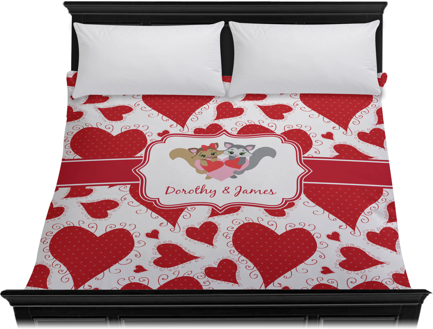 This sweet design, complete with adorable woodland animals, is sure to make her swoon. With stitched red hearts with polka dots and swirls in the background, it is just perfect for Valentine's Day.