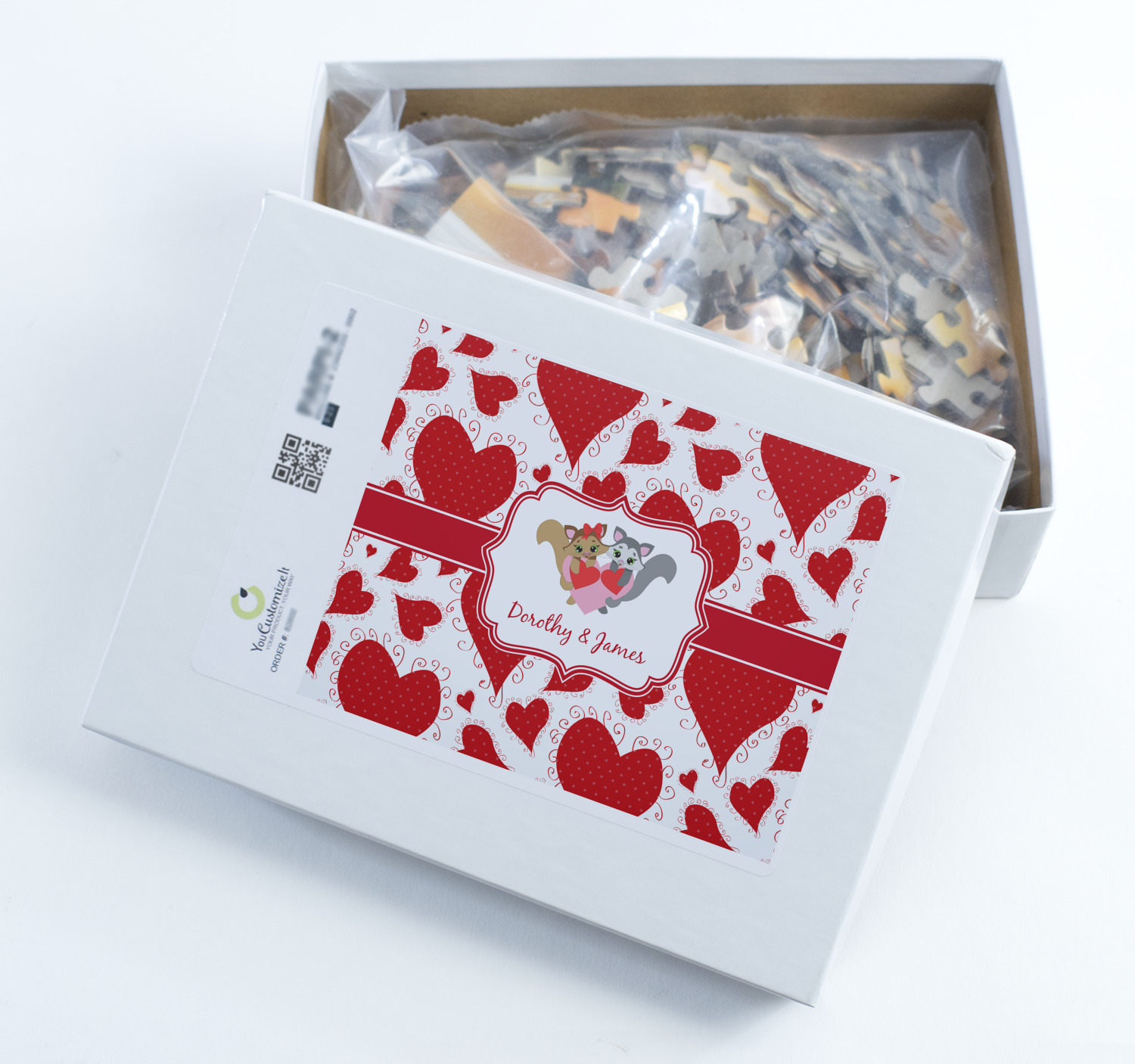 We print our puzzles on thick white chipboard in vibrant colors, then laminate the chipboard and die cut your puzzle. Your jigsaw puzzle is shipped to you in a box with the image of the puzzle on the box.