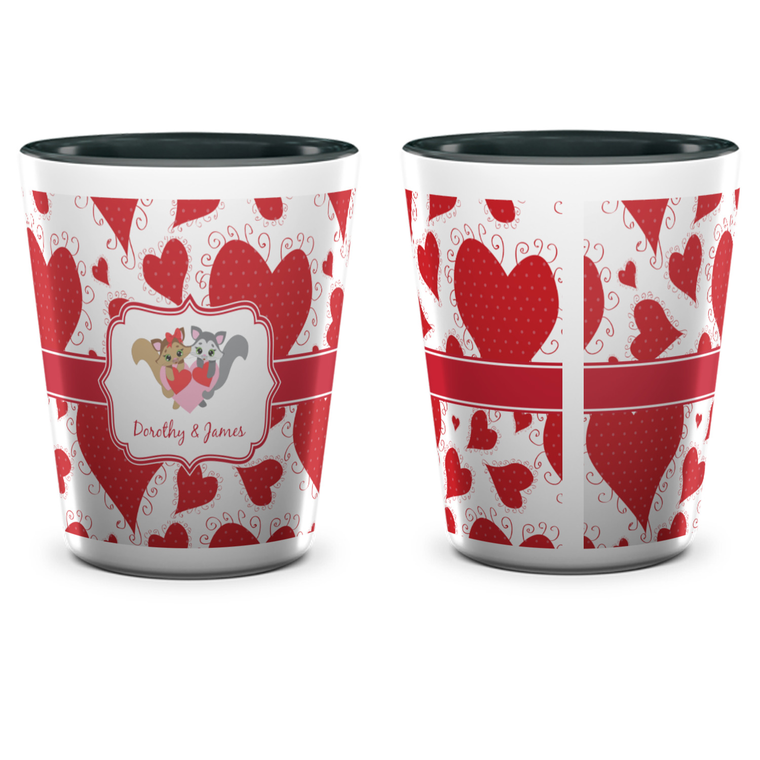 Made from ceramic these shot glasses are printed in full color with the design of your choice. These are a standard 1.5oz size and stand 2.25" tall. Available in a full white ceramic or a two-tone with a black color inside the shot glass. Buy a single or a set of 4, all of which can be designed separately to get you just what you want and need.
