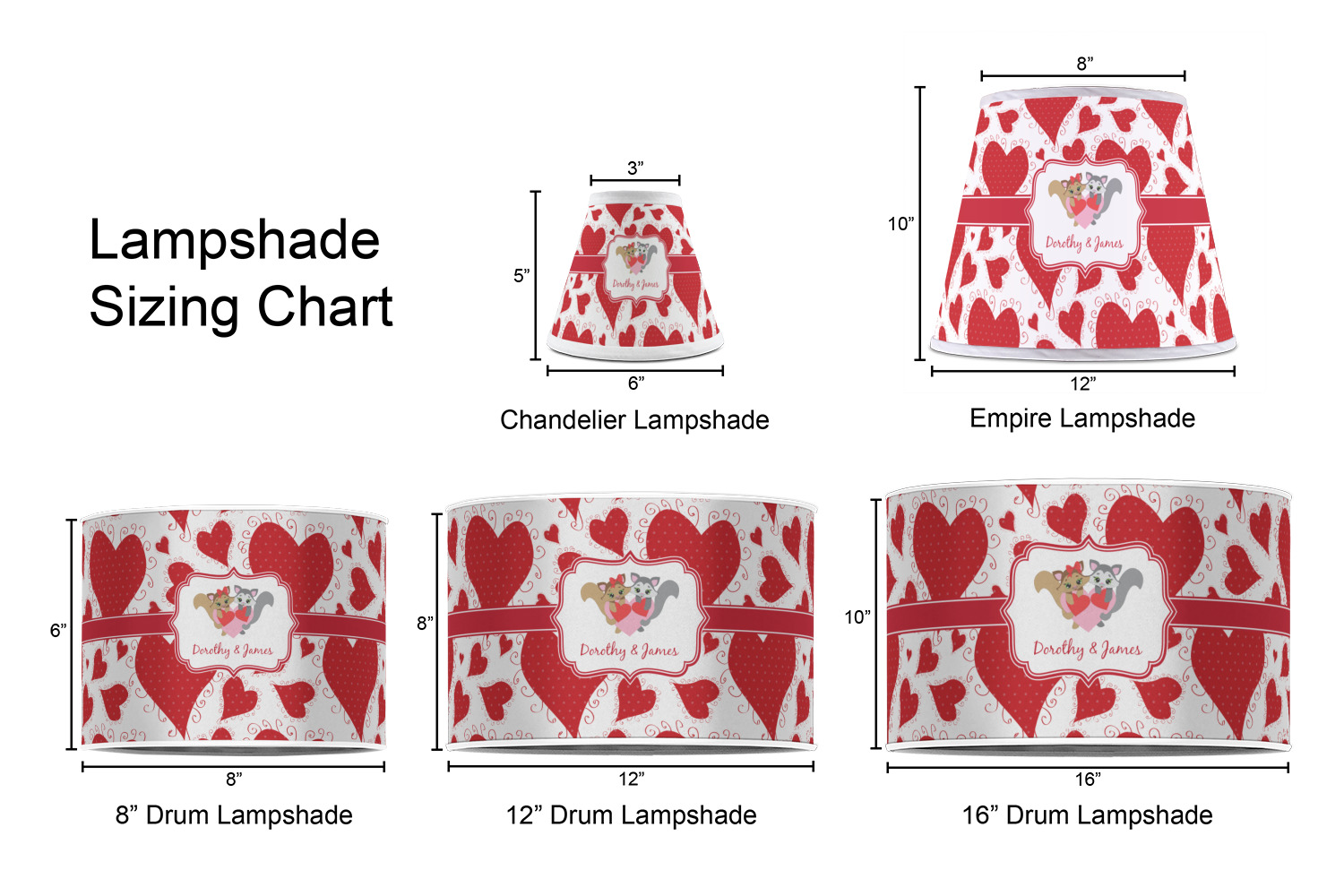 Our customized lamp shades also come in 3 different sizes: 8", 12" and 16", measuring at 8" in diameter by 6" tall, 12" in diameter by 8" tall, and 16" in diameter by 10" tall, respectively.