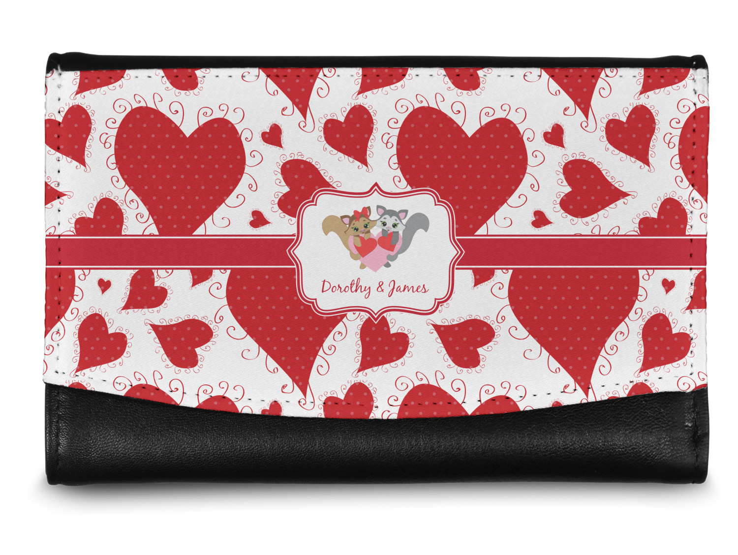 The compact size of this wallet - 5.5in wide, 3.5in tall and 0.75in thick when folded - makes it perfect to hold in hand and small enough to fit in a clutch or a normal size purse. The outside flap is customized with your choice of artwork and closes with a snap closure - with two different snaps to allow it to be adjusted when storing more items - to securely fasten the flap.
