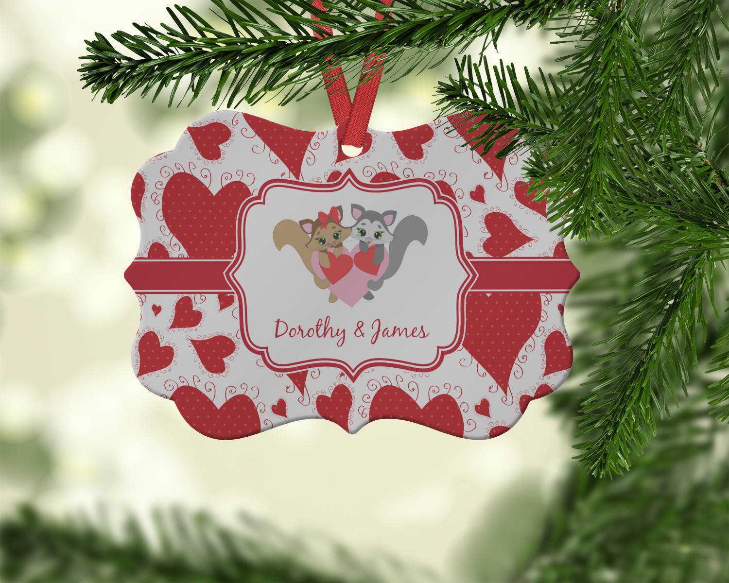 We offer double-sided printing on our personalized metal ornaments all with a gloss finish to make sure your Christmas tree continues to illuminate through the night. We offer 4 different metal ornament shapes to help express yourself or loved ones! Choose from our ball, paw print, star, or frame metal ornaments. Each metal ornament is an aluminum material sure to last you as many years as needed to share the joy and warmth of the holiday. We pair each customizable ornament with a red ribbon to tie your ornament and hang on your Christmas tree!