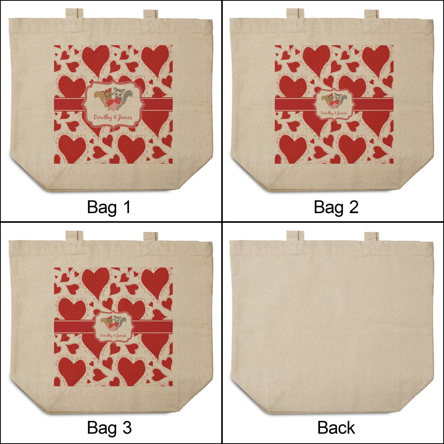These cotton totes are washable and easy to care for, and they can be folded flat for storage. Your artwork, logo, or photo is printed in full color directly on the cotton tote in the front.