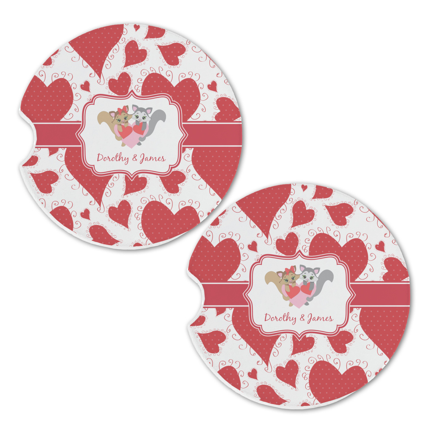 These sandstone coasters are round, robust, and feature a smoothed glossy side to exhibit your customized design. With a 2.5 inch diameter, these stone coasters will fit snugly inside most cup holders. This model also features a semi-circle shaped divot that allows for easy removal, despite the tight fit. You can purchase these car cup holder coasters in a pair, or singularly, depending on your needs.