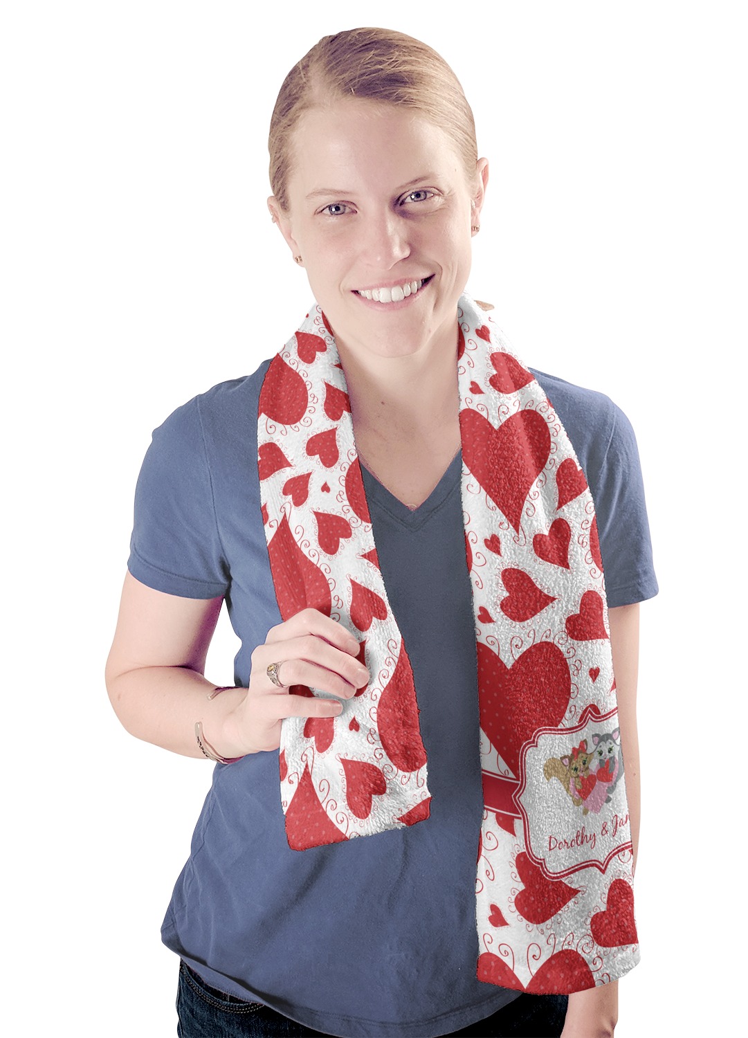 These towels are 44" x 12", which are the perfect size for hanging around your neck on the treadmill or wiping your brow after a hard workout. They are full-print towels with your very own design printed right on the front! They are perfect for soaking up moisture and are quite soft against your skin.