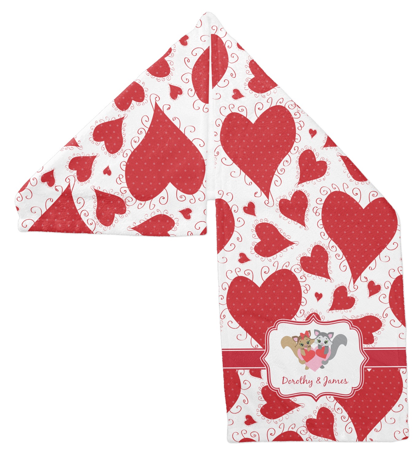 This sweet design, complete with adorable woodland animals, is sure to make her swoon. With stitched red hearts with polka dots and swirls in the background, it is just perfect for Valentine's Day.