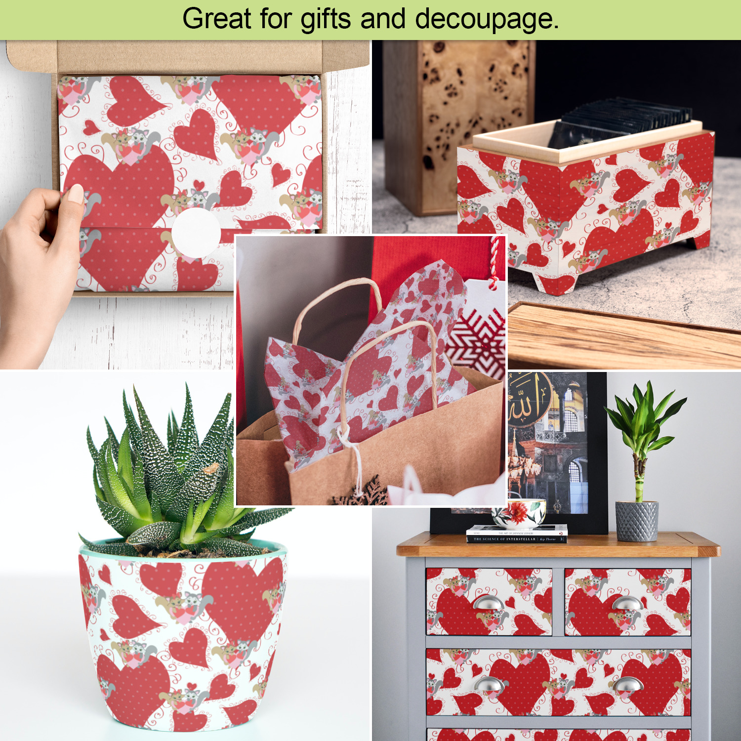 Our tissue paper sheets are also perfect for decoupage i.e. the art of gluing paper on ordinary objects to decorate them.