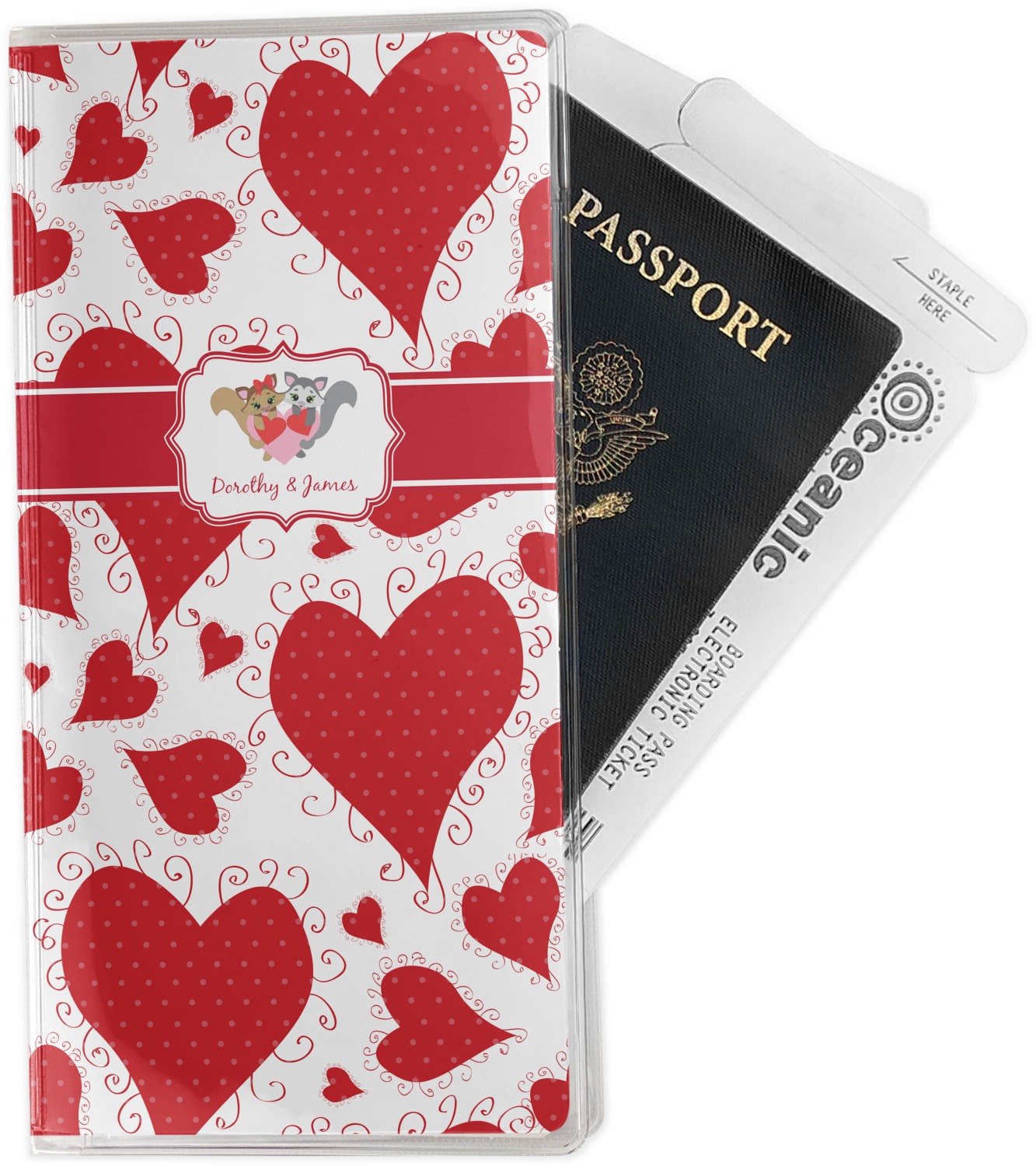 This document holder is really sturdy and has your personalized design inserted right behind all of your nifty pockets, so you can see it on the front and back covers. There are two large pockets and two shorter pockets inside. The larger pockets are tall enough to keep your boarding pass nice and straight. The smaller pockets (on top of the large pockets) are large enough to fit your passport, credit card, or ID.
