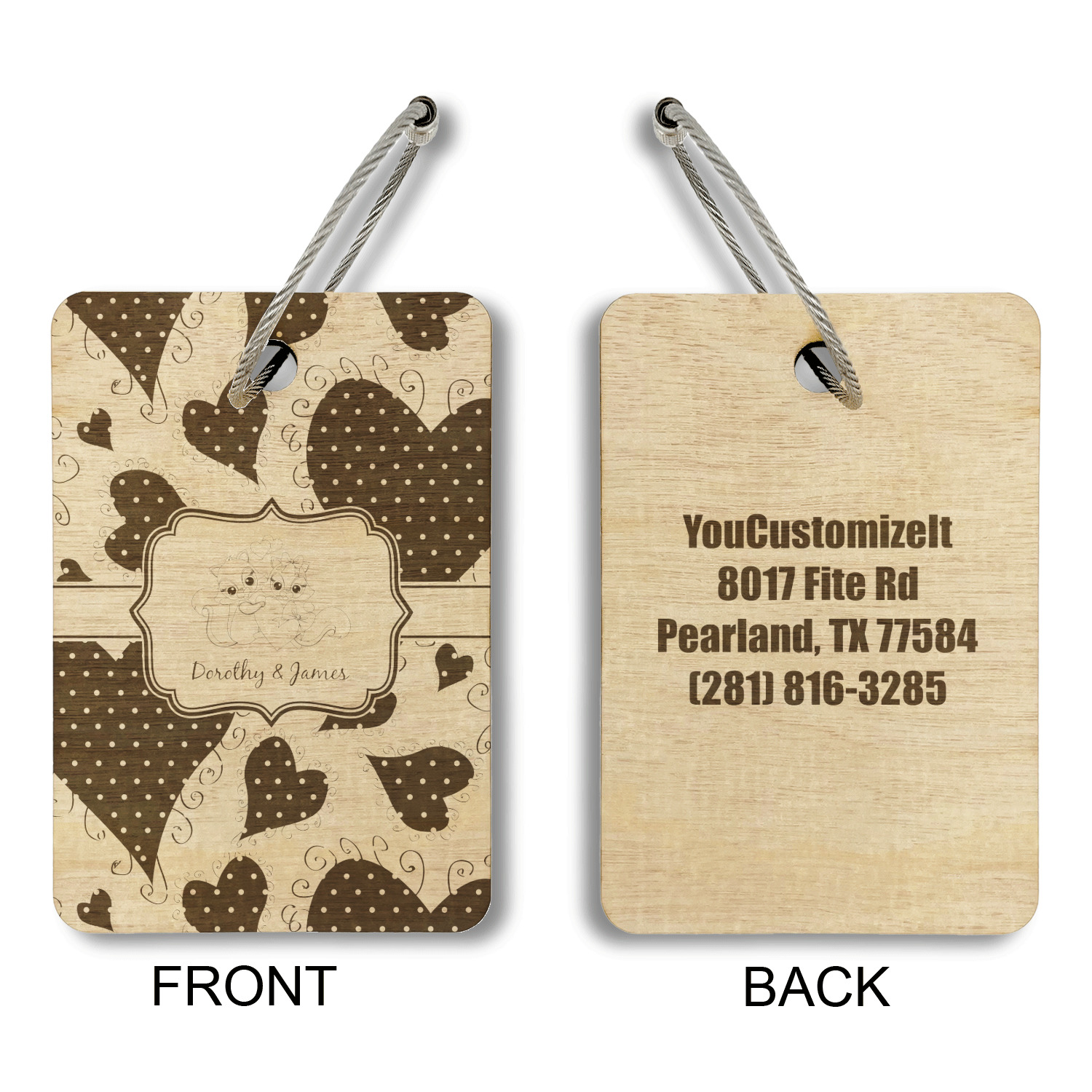 Made from a premium hardwood, these luggage tags are laser engraved and cut just for you. The front contains your design of choice and the back has your contact information to ensure your luggage gets back to you if ever lost.