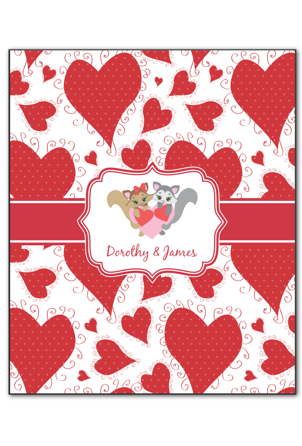 This sweet design, complete with adorable woodland animals, is sure to make her swoon. With stitched red hearts with polka dots and swirls in the background, it is just perfect for Valentine's Day.