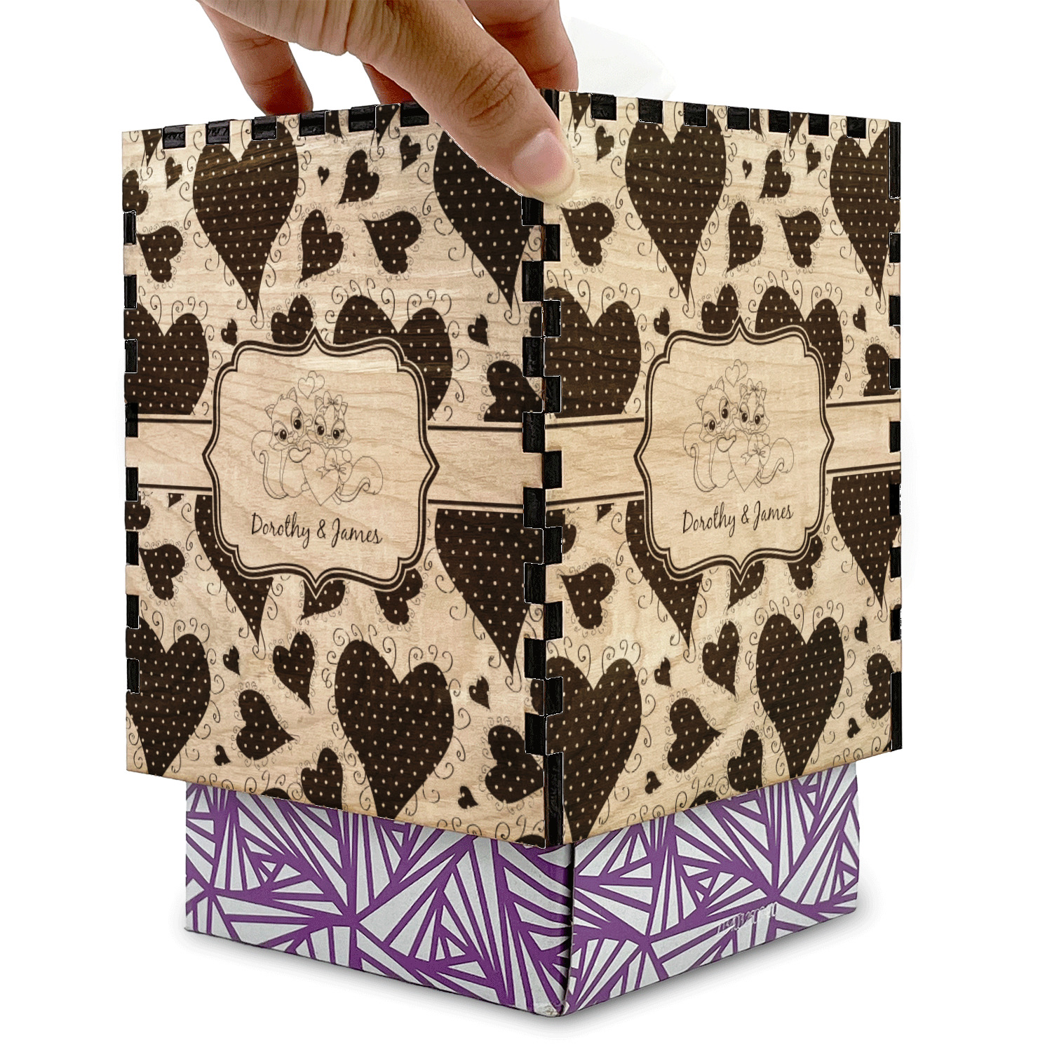Use our design studio to design the tissue box that best suits your décor. The 4 sides will be fully laser engraved with a pattern and content of your choice and the top will contain the same matching fill or you have the option to change it if you would like.