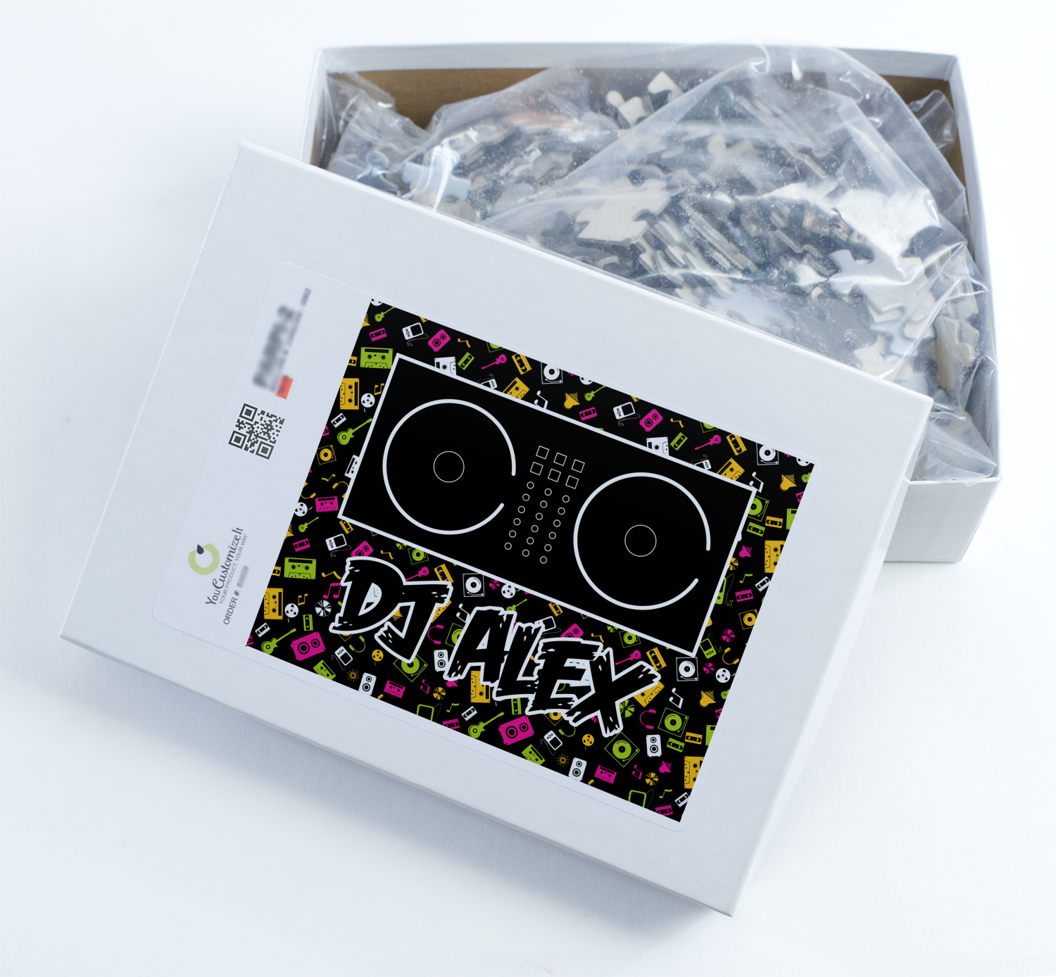 You can also upload your logo or art that you or your kids drew. To create more challenging jigsaw puzzles, you can create a pattern from with your logo or artwork. You can also add other elements such as text or personalization.