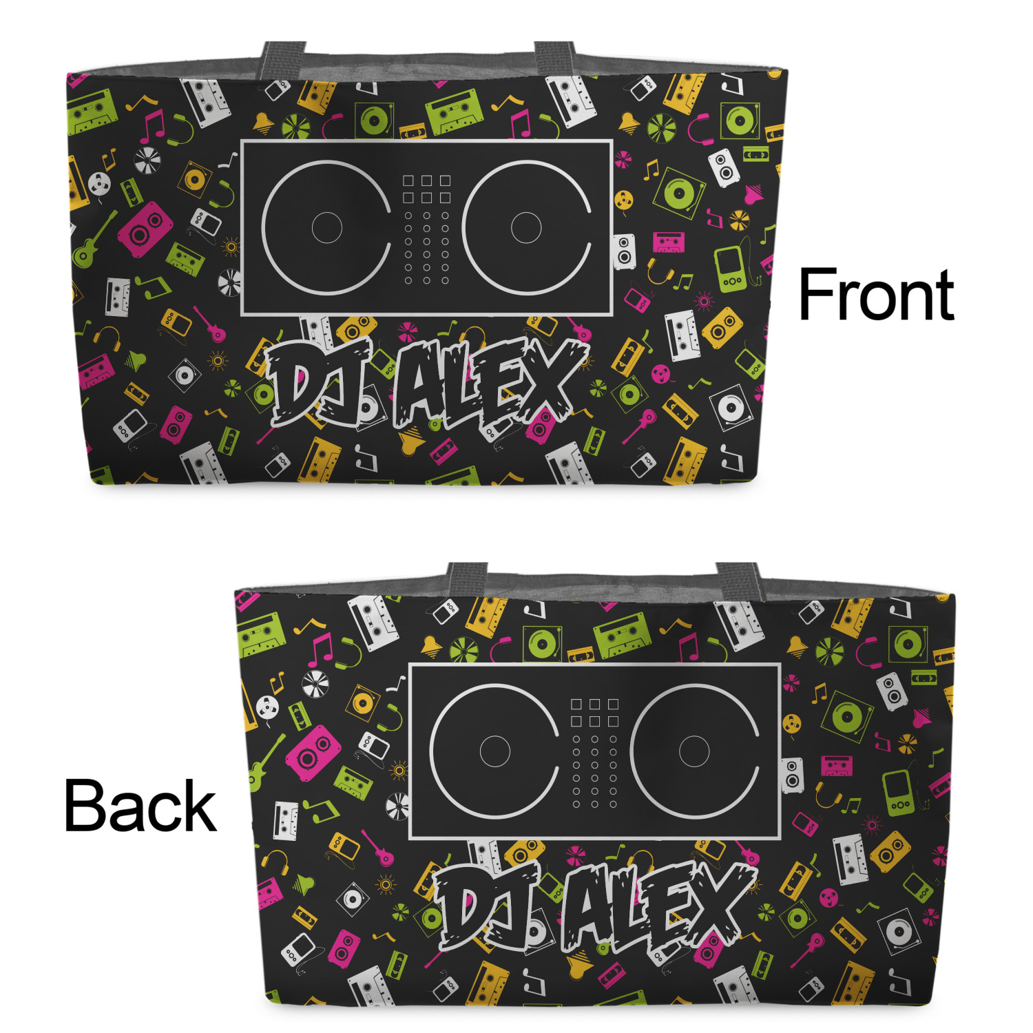 You can design the totes with a design on the front and another one on the back. The two designs can be identical or completely different. The choice is yours.