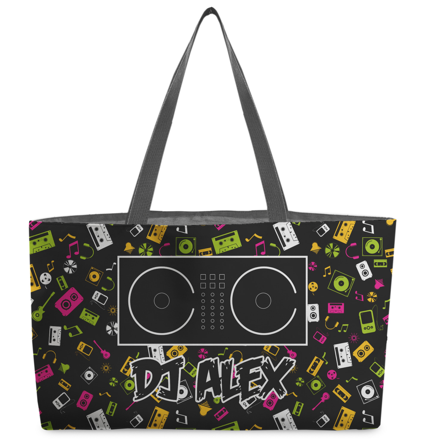 The totes are made from a sturdy canvas material on the outside and are lined with a black poly cotton lining. The beach totes have an approx. 28" black woven handles.