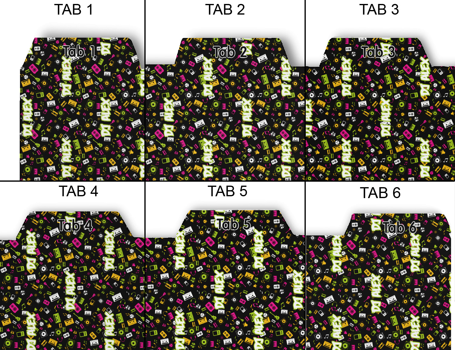 What better way to outfit your new custom personalized binder than a set of custom tab dividers? These can be made to compliment your binder design to take it to the next level!