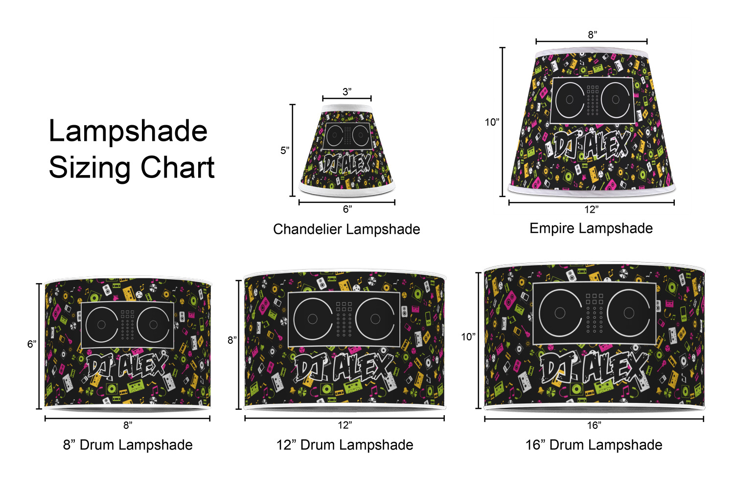 Our customized lamp shades also come in 3 different sizes: 8", 12" and 16", measuring at 8" in diameter by 6" tall, 12" in diameter by 8" tall, and 16" in diameter by 10" tall, respectively.