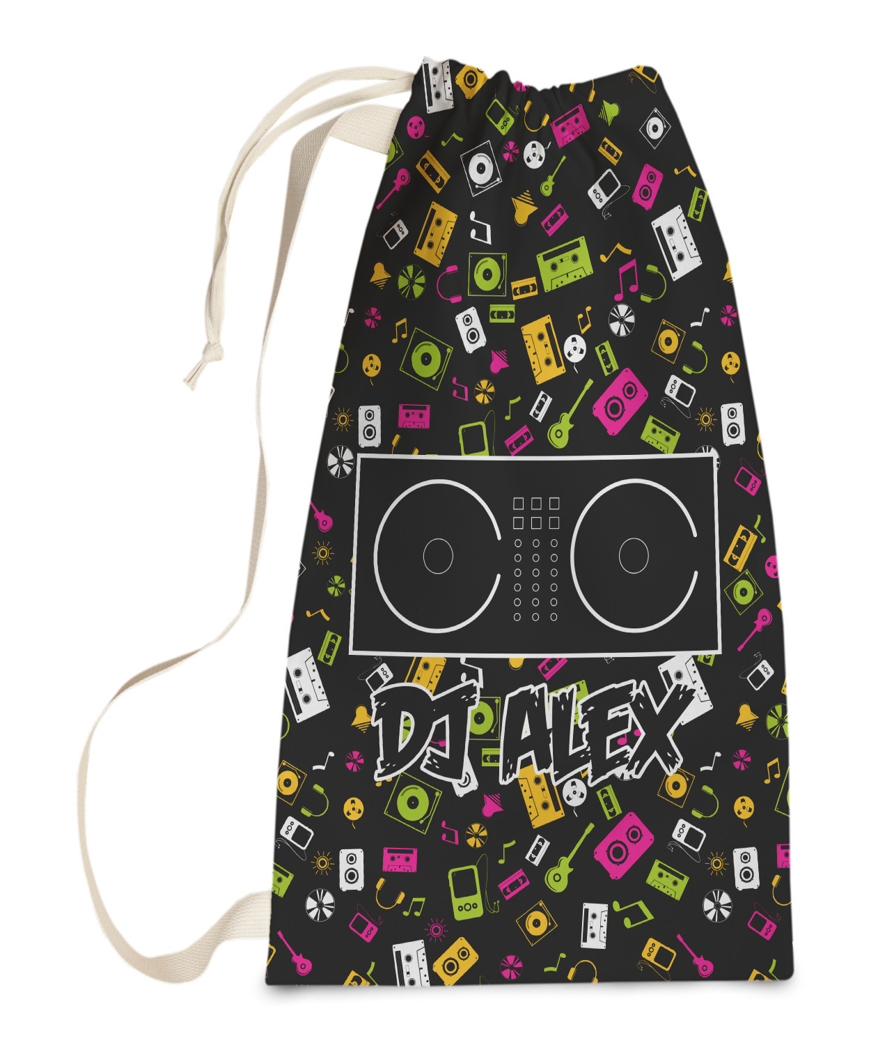 Carry your laundry in style with these customized laundry bags. Available in two sizes, featuring a natural colored woven strap and a cinch cord, these bags hold a lot of clothes or anything else you want to fit in them.