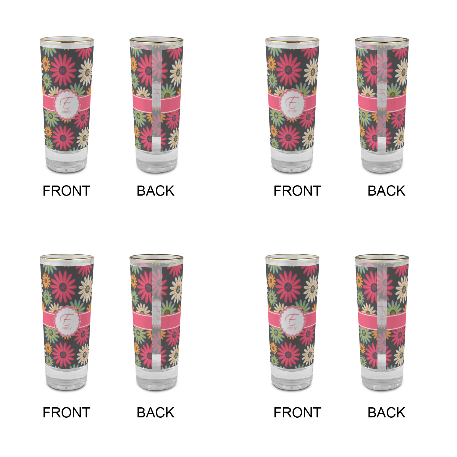 Daisy / Daisies Designs for 2 oz Shot Glasses - Glass with Gold Rim